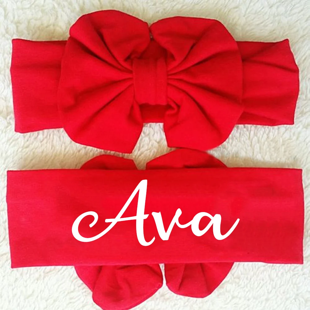 Повязка на голову с бантом для новорожденных девочек, индивидуализированная головная повязка с краснымбелым бантом для младенцев, с именем на заказ, подарок для будущей мамы