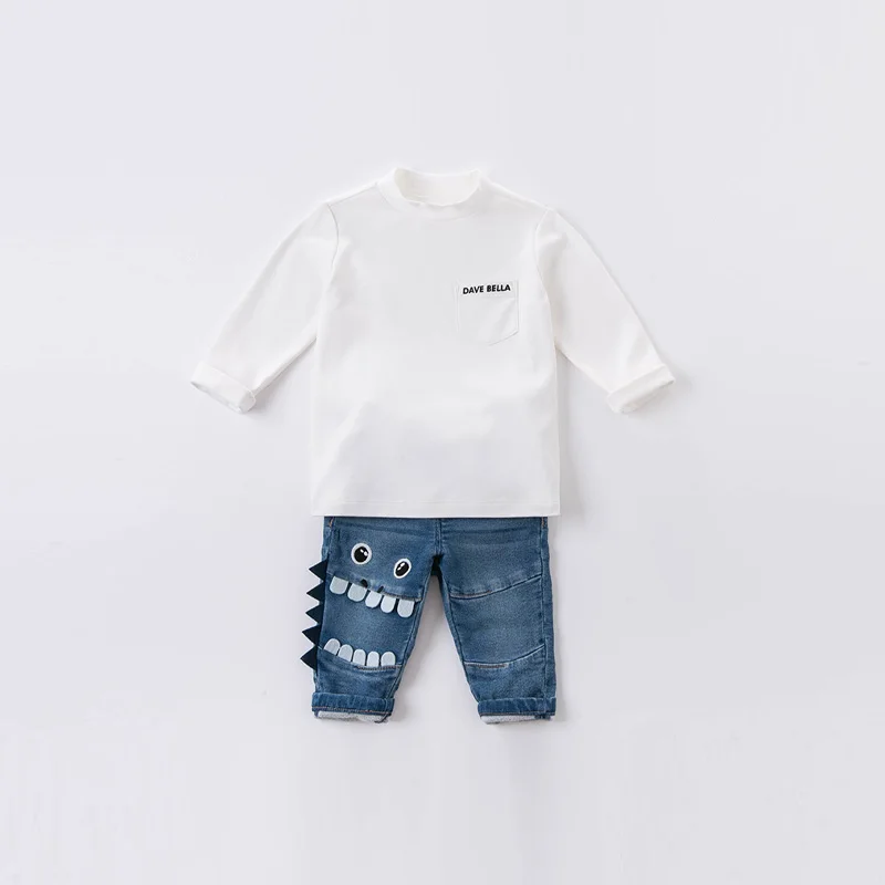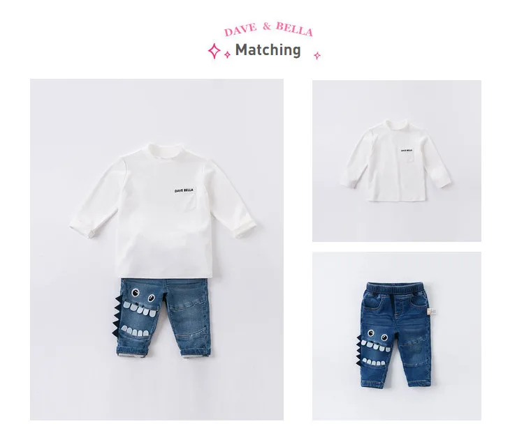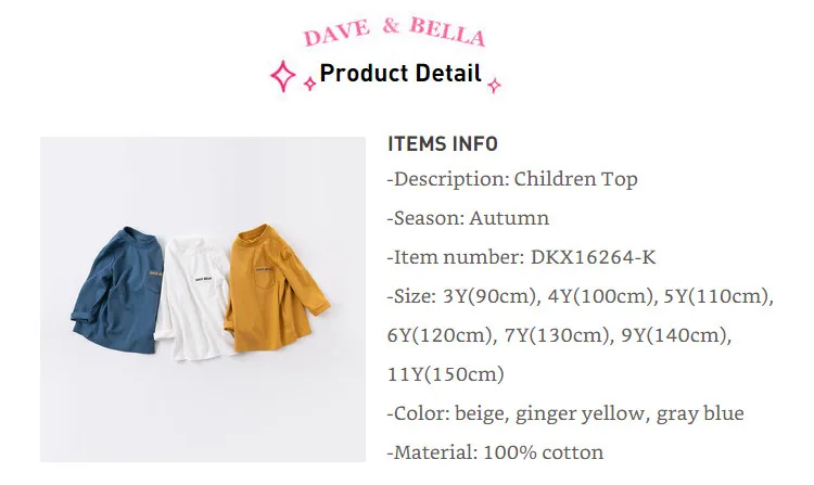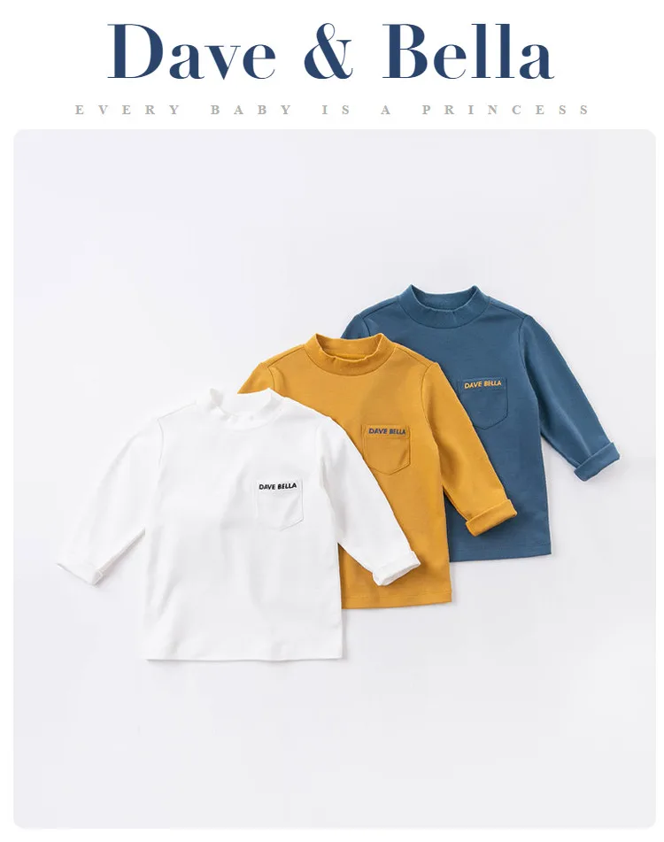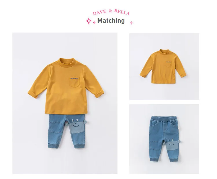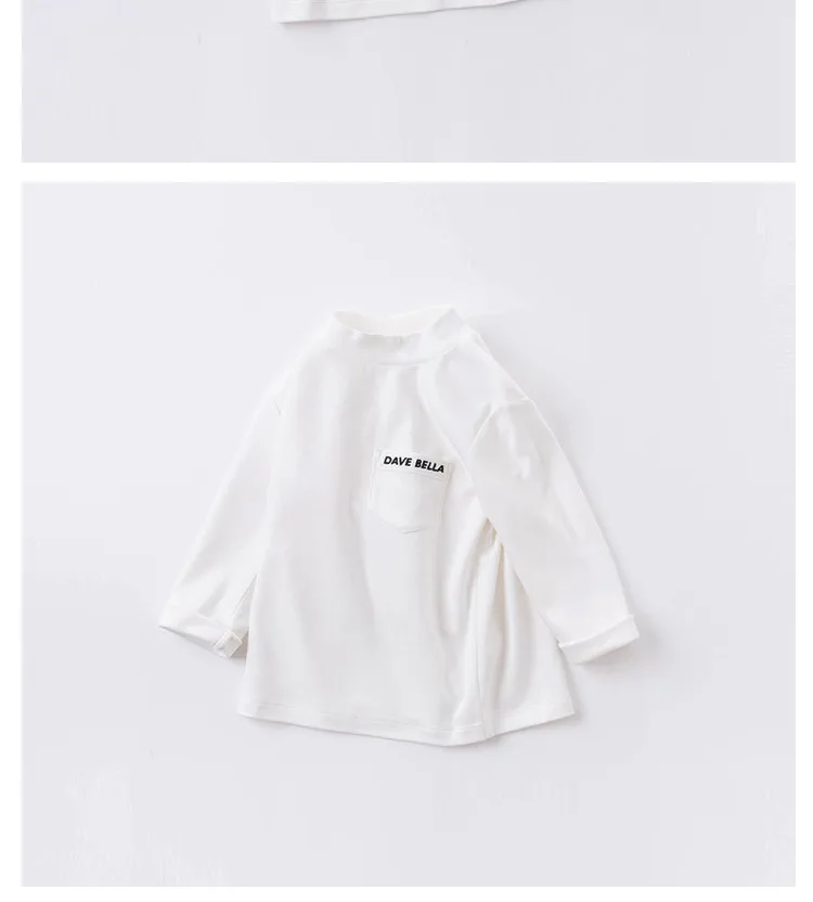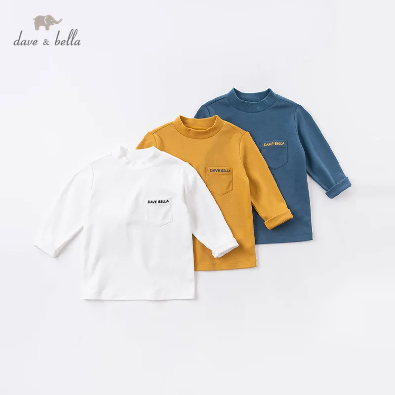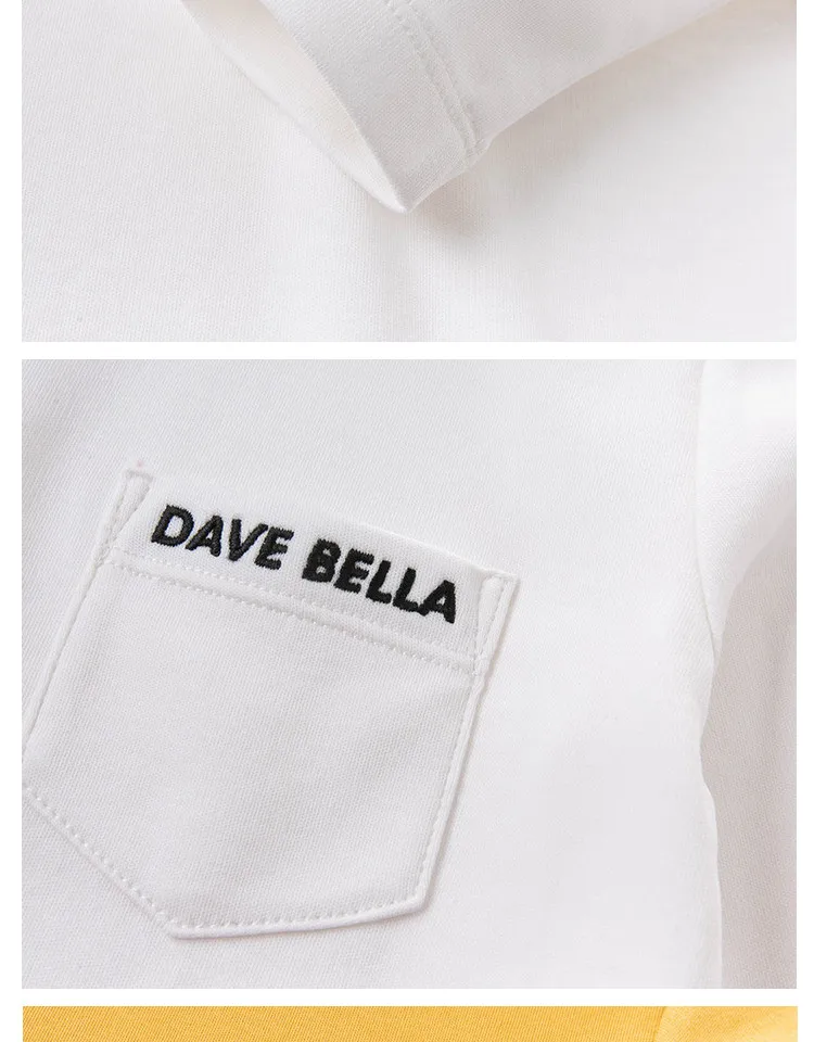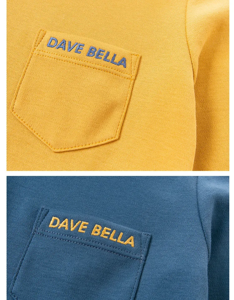 DKX16264-K dave bellaОсенняя От 3 до 11 лет детская одежда детская модная футболка с карманами и буквенным принтом модные футболки высокого качества для мальчиков