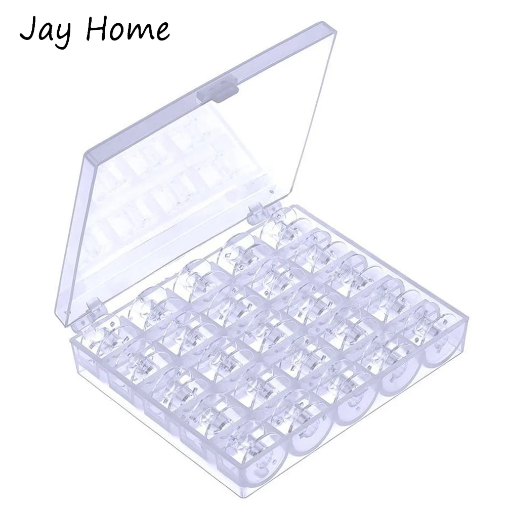 25 шт., прозрачные катушки для швейных машин катушек, с чехлом для хранения, пластиковые шпульки для шитья, принадлежности для шитья