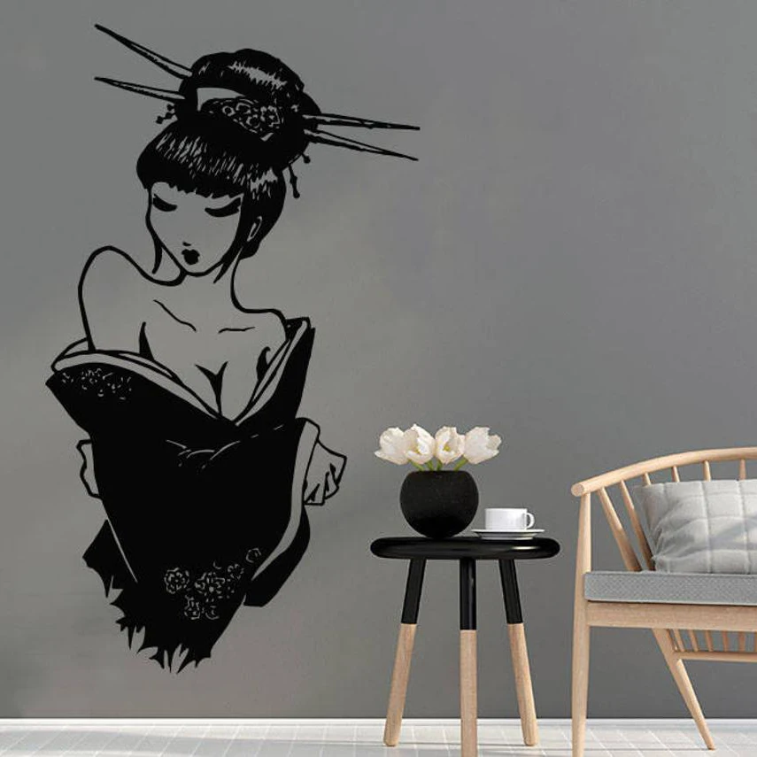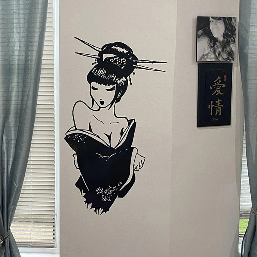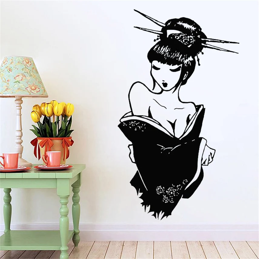 Японская Настенная Наклейка Geisha, Виниловая наклейка на стену, девушка манга, восточная девушка, японский домашний декор, искусство, украшение для спальни, дизайн C342