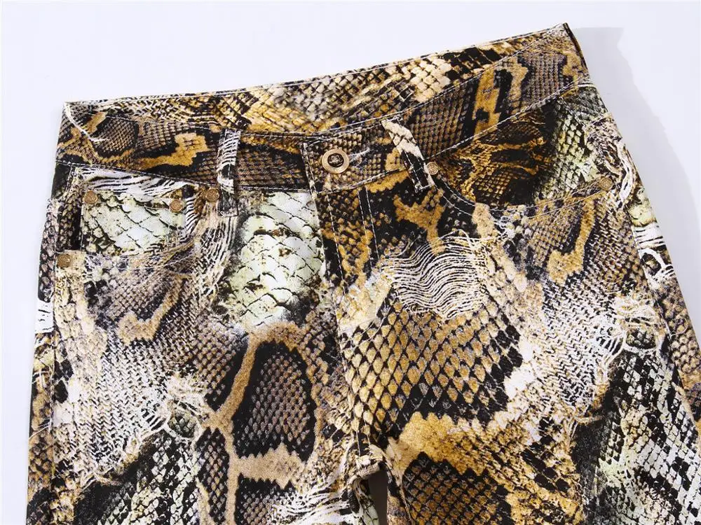Новые Брюки корейские мужские джинсы из змеиной кожи облегающие модные брюки для ночного клуба в трендовом стиле с крутым принтом и ночным певицом
