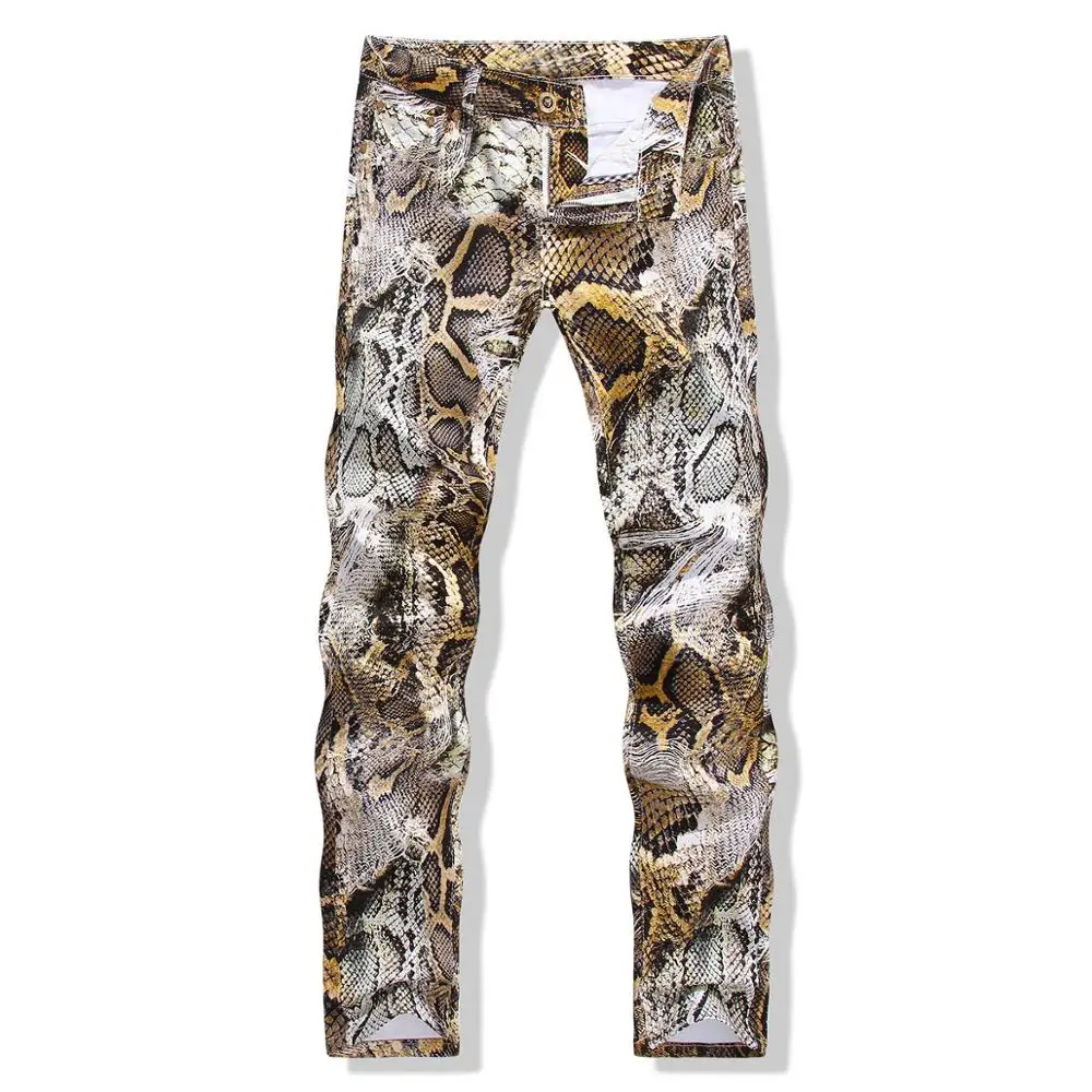 Мужские облегающие джинсы из змеиной кожи для ночного клуба, модные...