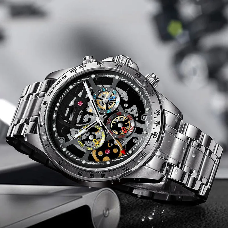 Часы-скелетоны Мужские механические, из нержавеющей стали