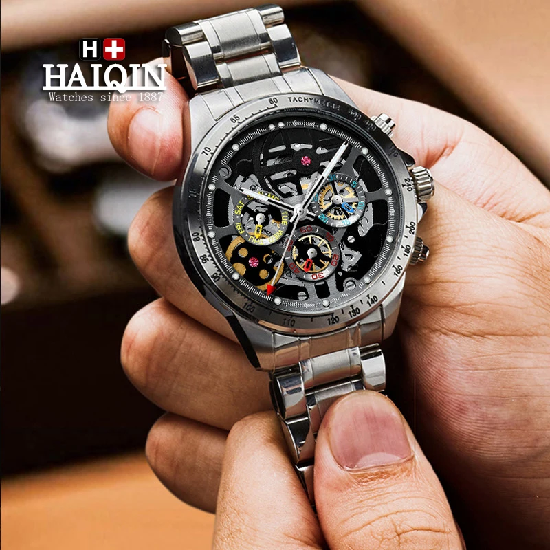 Часы HAIQIN мужские, автоматические, механические, из нержавеющей стали