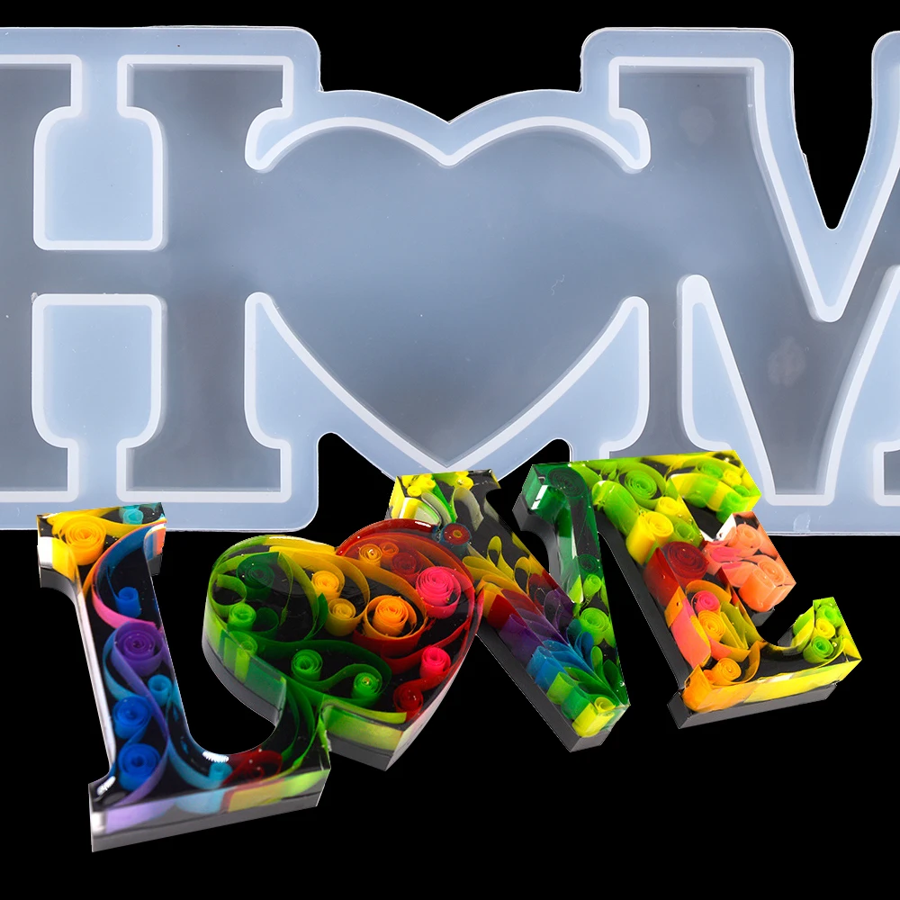Буквы кристалл смолы формы DIY ремесла литья формы сердце формы дома любовь силиконовые формы украшения дома ювелирных изделий инструмент