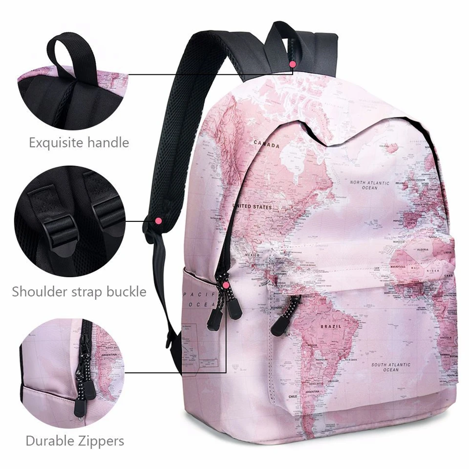 2 шт., рюкзак с принтом карты мира для девочек, сумка для ноутбука,...
