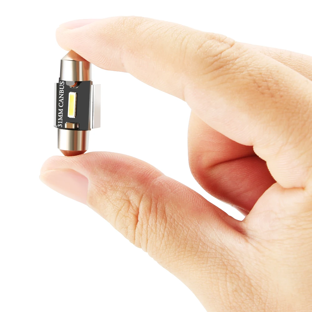 Основные характеристики: Номинальное рабочее напряжение: 12 В постоянного тока Мощность: около 3 Вт Доступные цвета: чистый белый 6000K, супер чистый светильник Материал: алюминиевый керамический корпус Источник освещения: высокая мощность CSP светодиодный чип Срок службы: более 100 000 часов, равен 80 летним срокам службы Яркость: 1000 лм/лампа Размер (длина): 31 мм, 36 мм, 41 мм Применение: Автомобильный интерьерный светильник, картографический светильник s, купольный светильник s, купольный светильник, светильник для чтения, светильник для багажника, внутренний светильник, светильник для номерного знака s, дверной светильник и т. д.