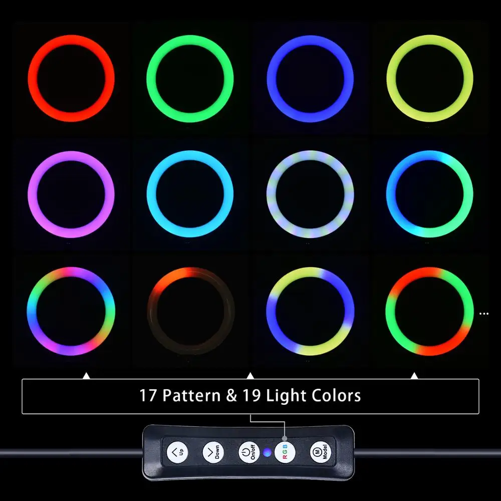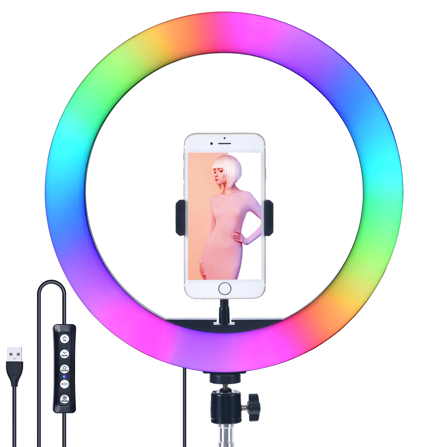 Fosoto RGB светодиодный светильник для селфи с штативом, USB светильник, кольцевая лампа с регулируемой яркостью, кольцевой светильник для телефона, с подставкой для Youtube Live Makeup
