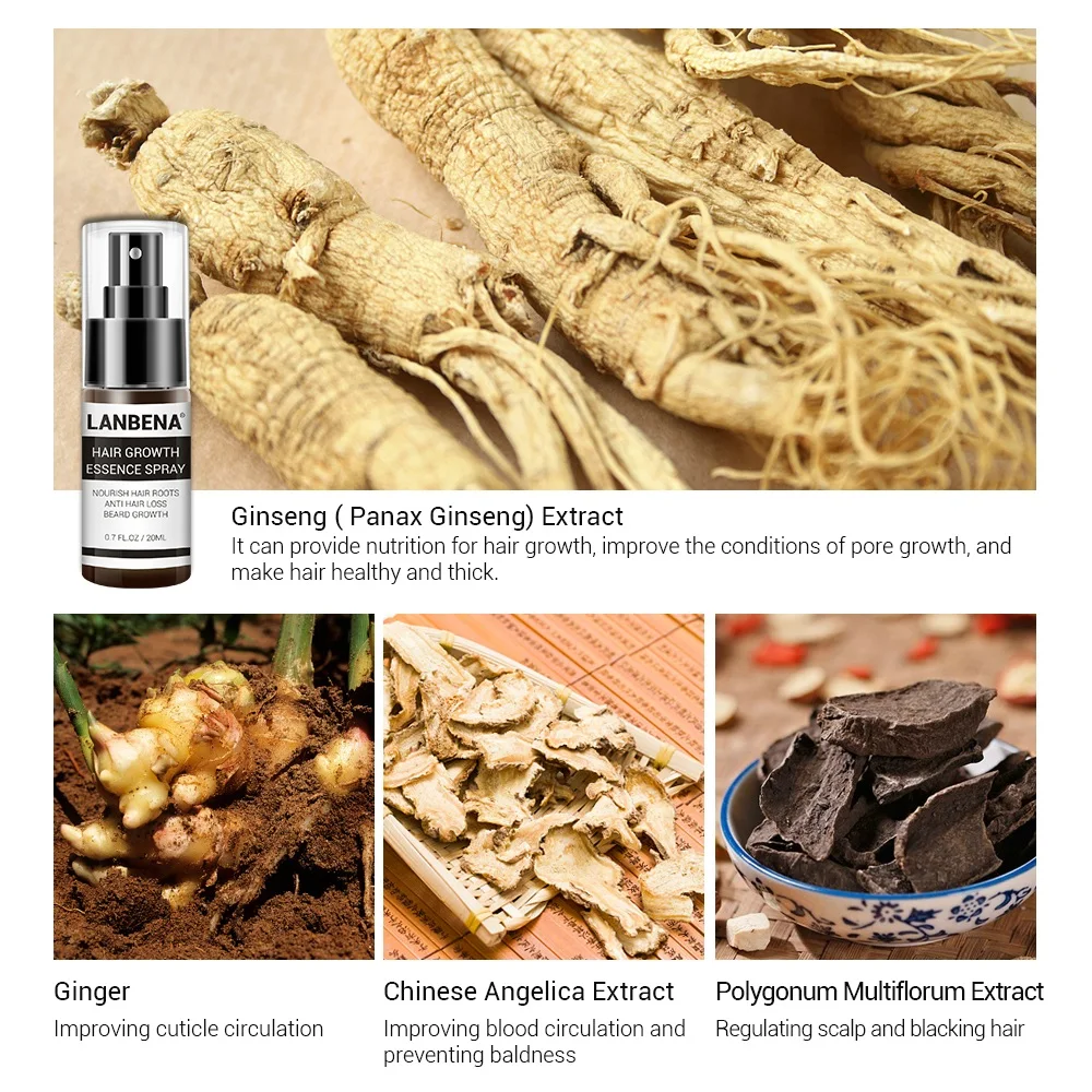 Спрей LANBENA для быстрого роста волос, сыворотка против выпадения ...