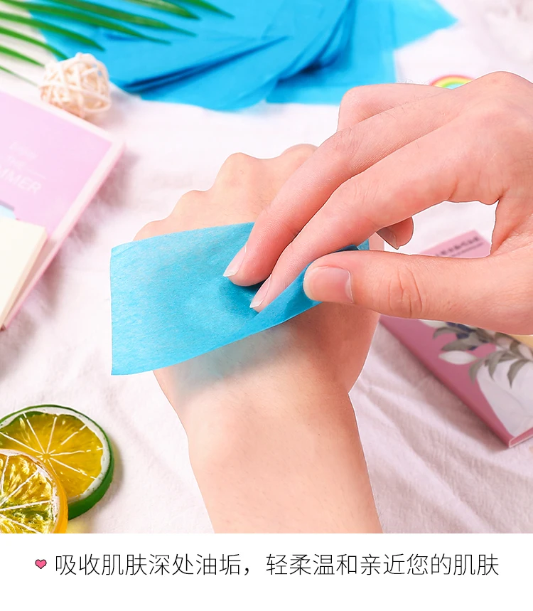 Ежедневное использование: Возьмите одну впитывающие салфетки с лица из масла, пресс для пота.