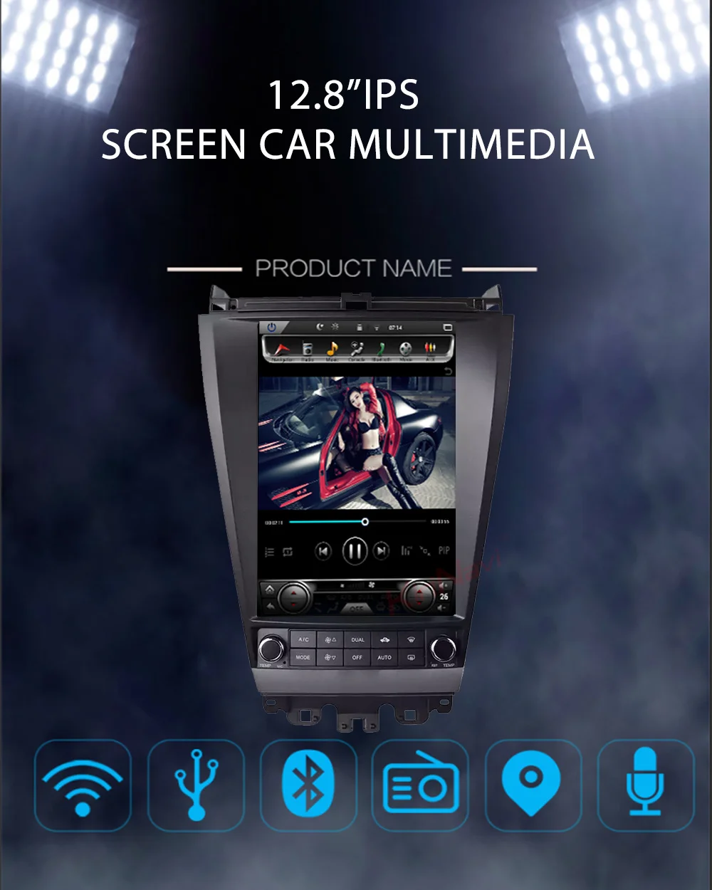 Киринави12,8 "Tesla стиль вертикальный экран Android 11 автомобильное радио Automotivo головное устройство для Honda Accord 7 автомобильный DVD мультимедийный плеер Авто GPS Навигация стерео 4G 2002-2007 сенсорный экран Bluetooth BT Музыка NO 1 DIN NO 2 DIN
