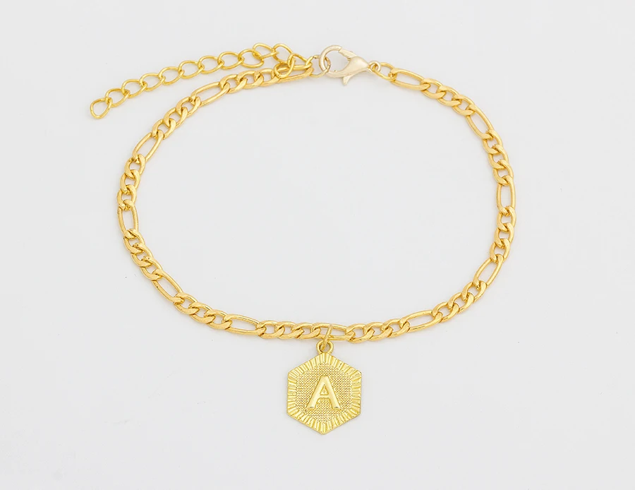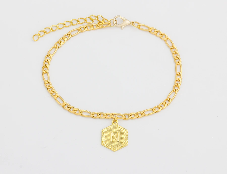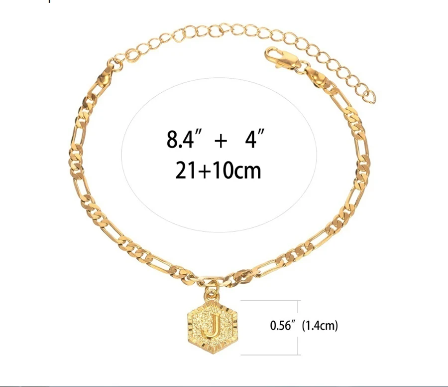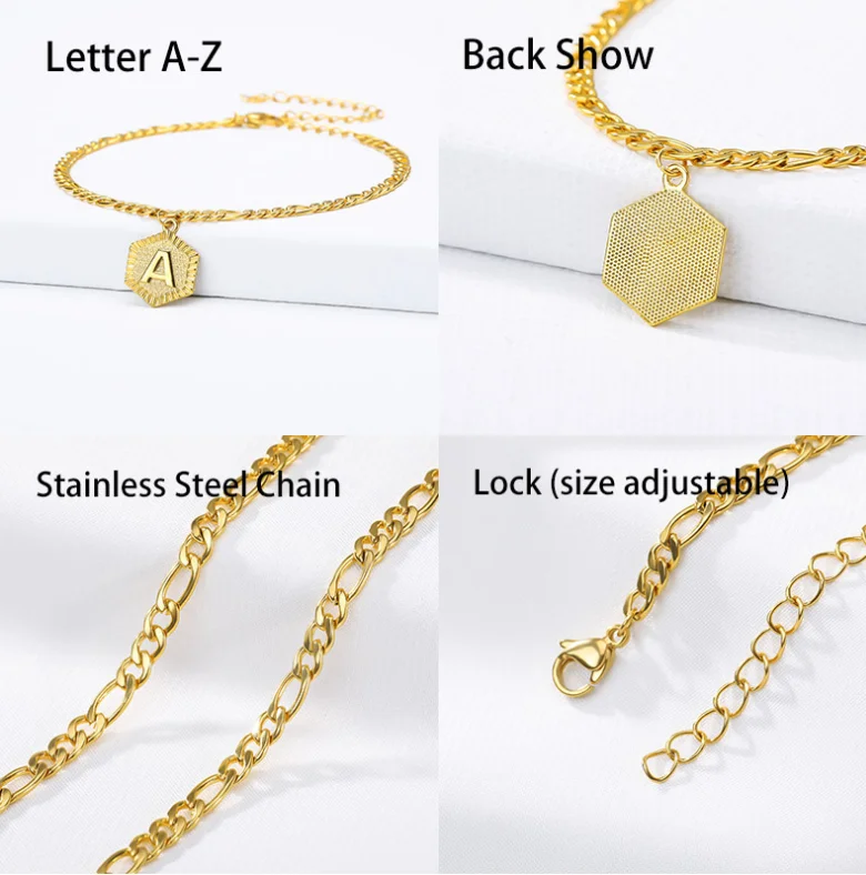 A-Z буквы ножные браслеты Шестигранная форма Начальная Лодыжка брас...