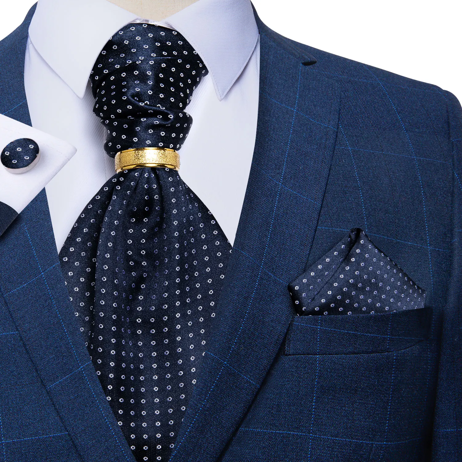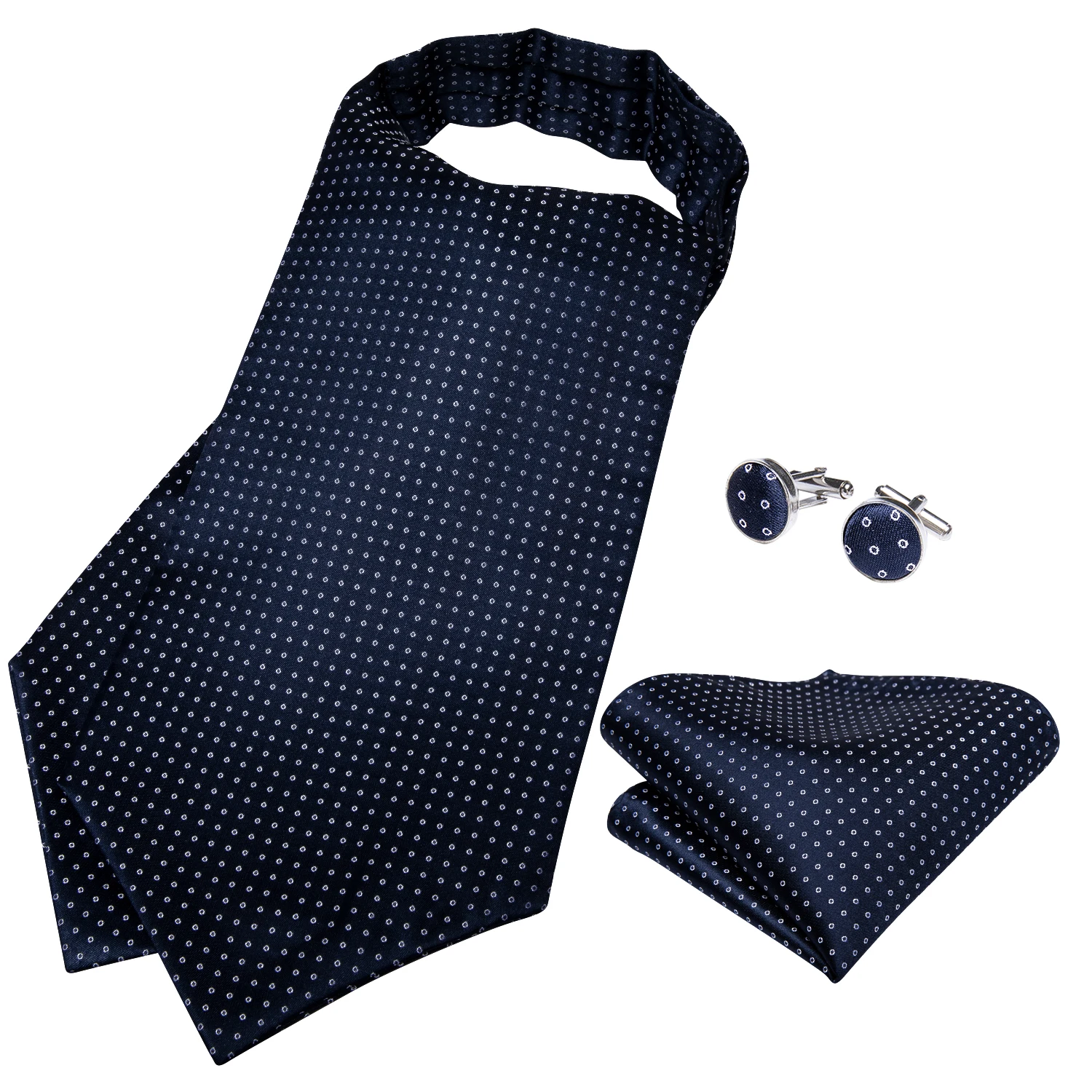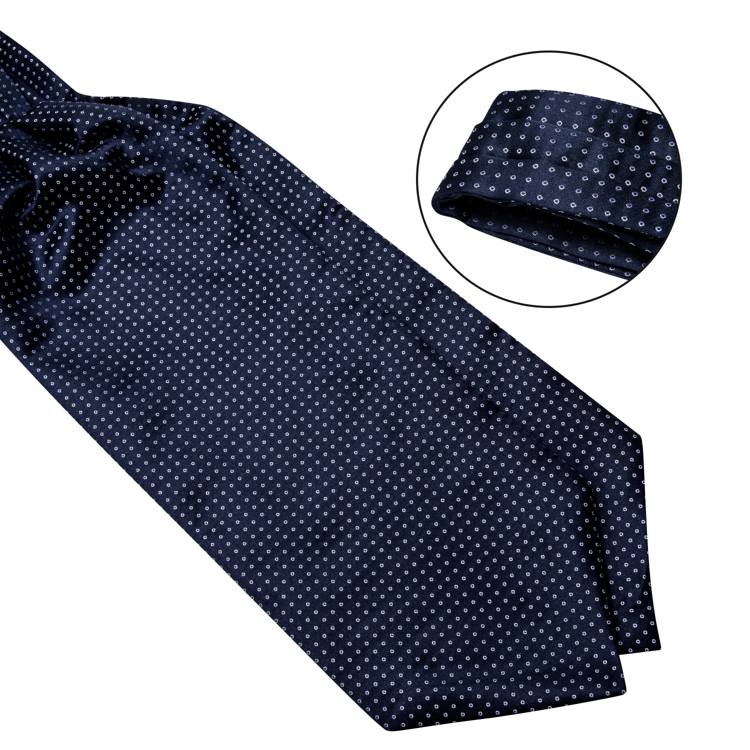 Галстук Мужской винтажный, Шелковый, темно-синий, в белый горошек