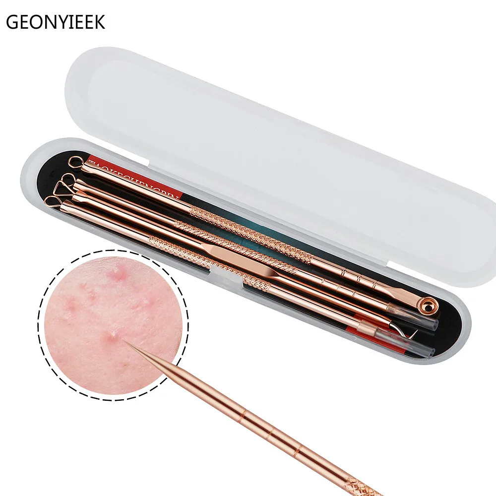 4 шт. розовое золото акне для удаления угрей иголок для удаления угрей, акне и черным пятнышком; Экстрактор Нержавеющаясталь Удаление прыщей инструмент