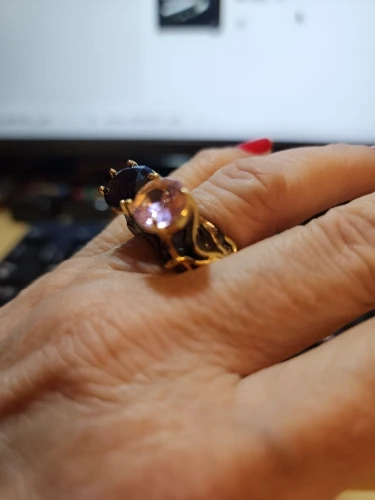 Женское кольцо с крупным аметистом, Черное золото 18 К, украшение в...