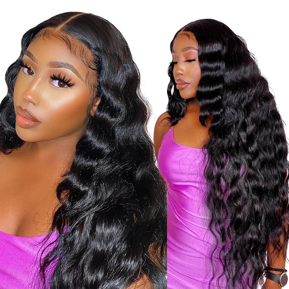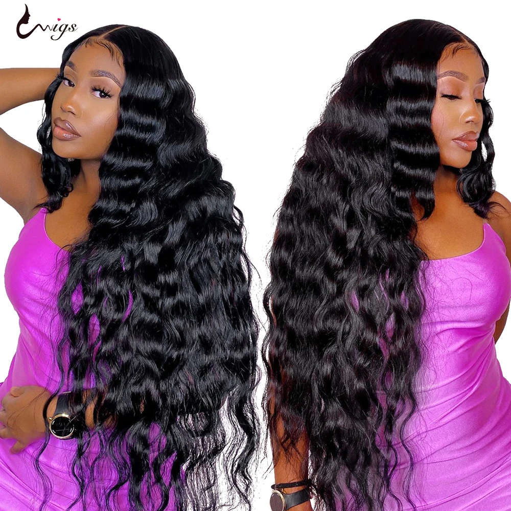 Парик Uwigs с волнистыми волосами, фронтальные волосы из перуанских волос с предварительно выщипанными, с Реми, 28, 30, 32, 34, 36, 38, 40 дюймов