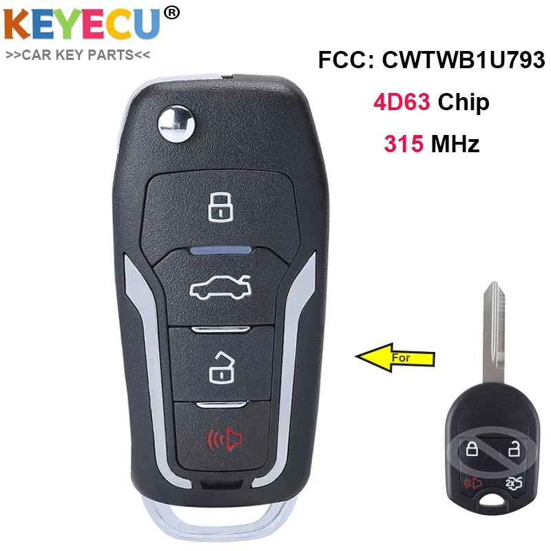 Пульт дистанционного управления KEYECU для Ford Mustang Edge, Explorer, 4 кнопки, 315 МГц, чип 4D63, CWTWB1U793