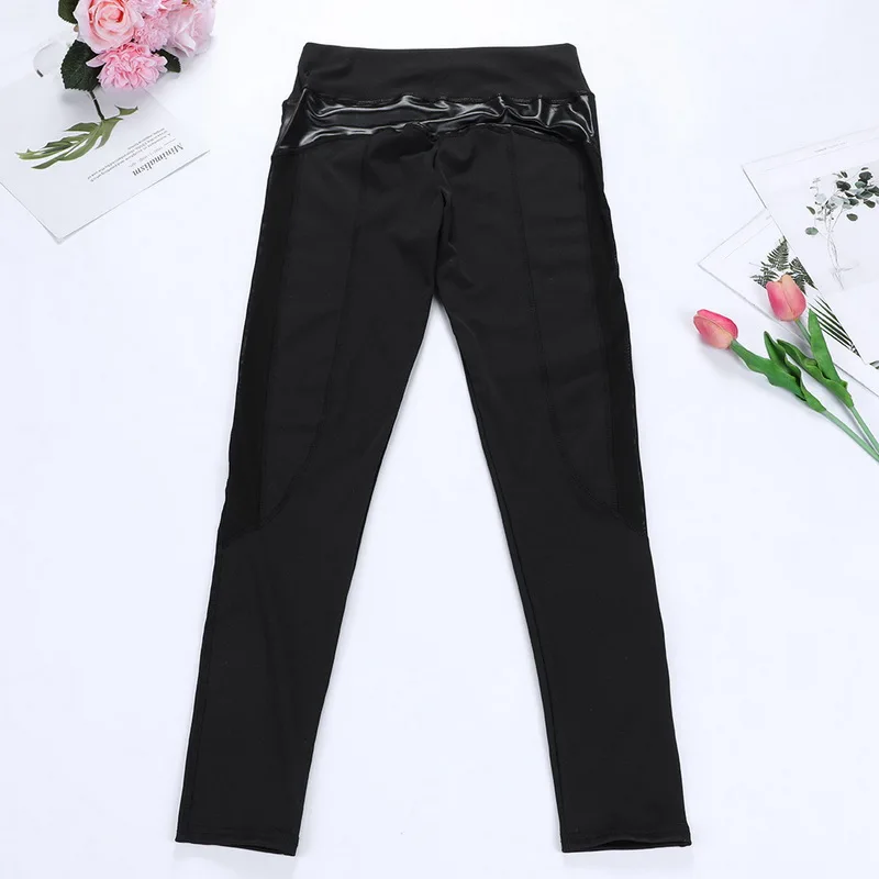 Full Ankle LengthMesh and Faux Leather Patchwork