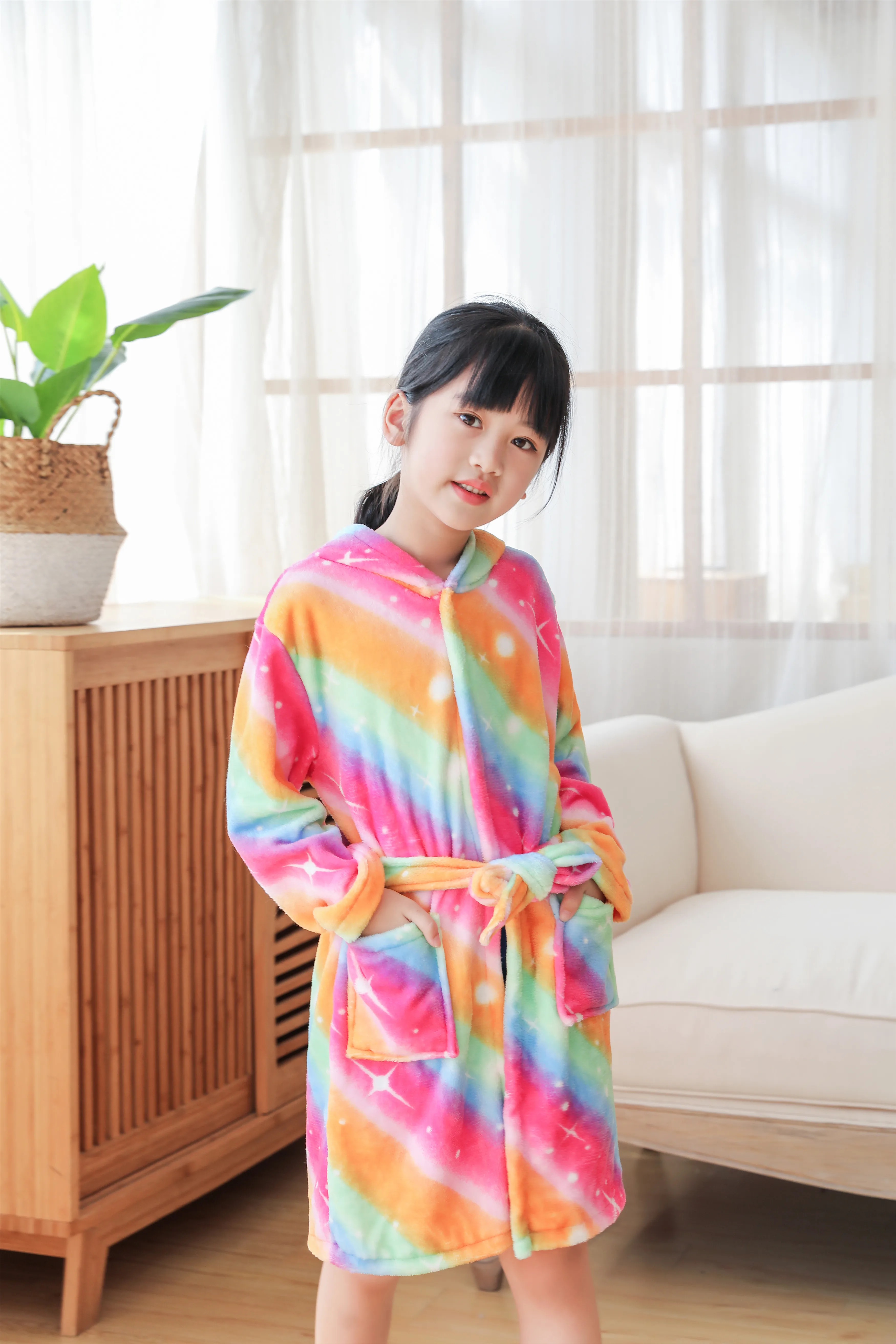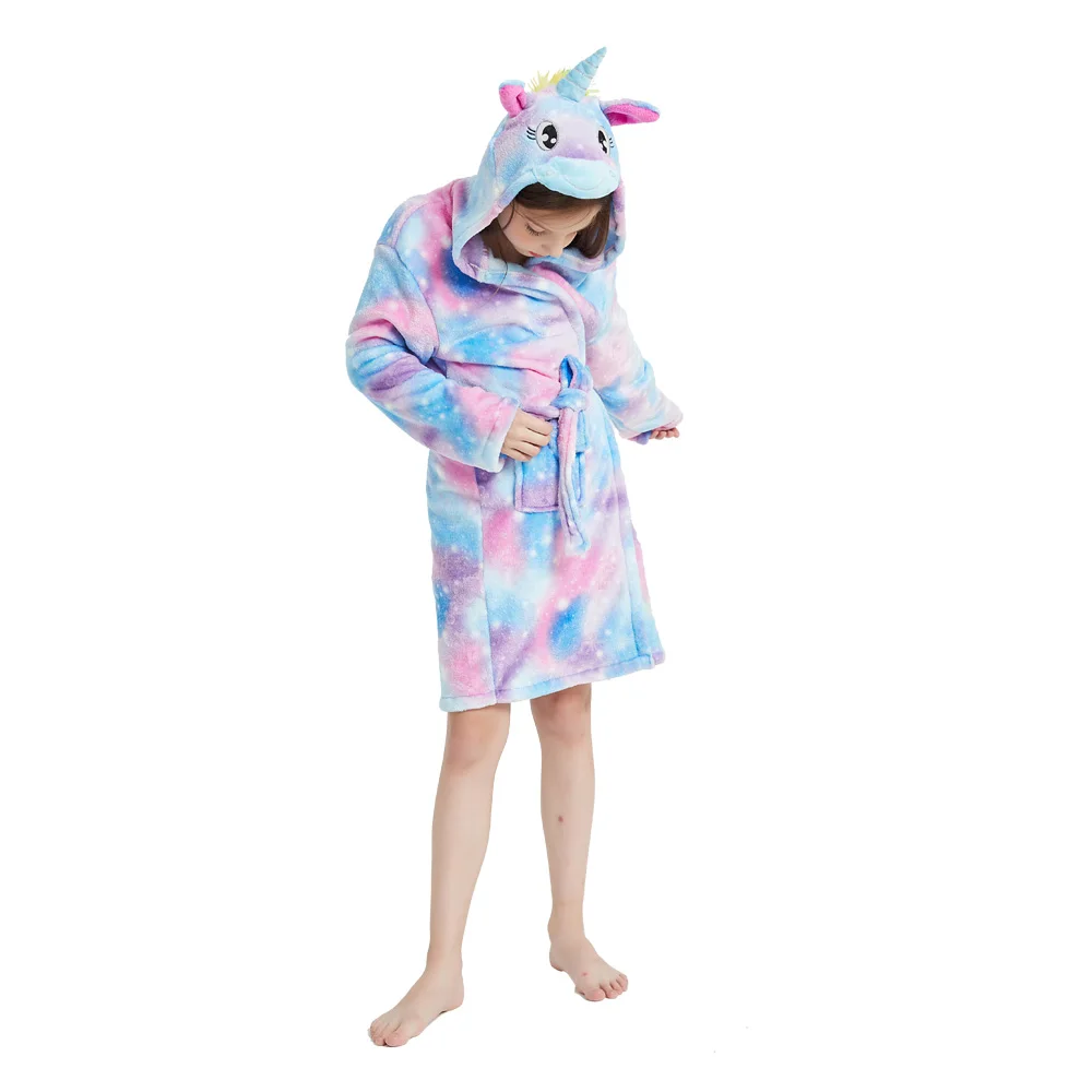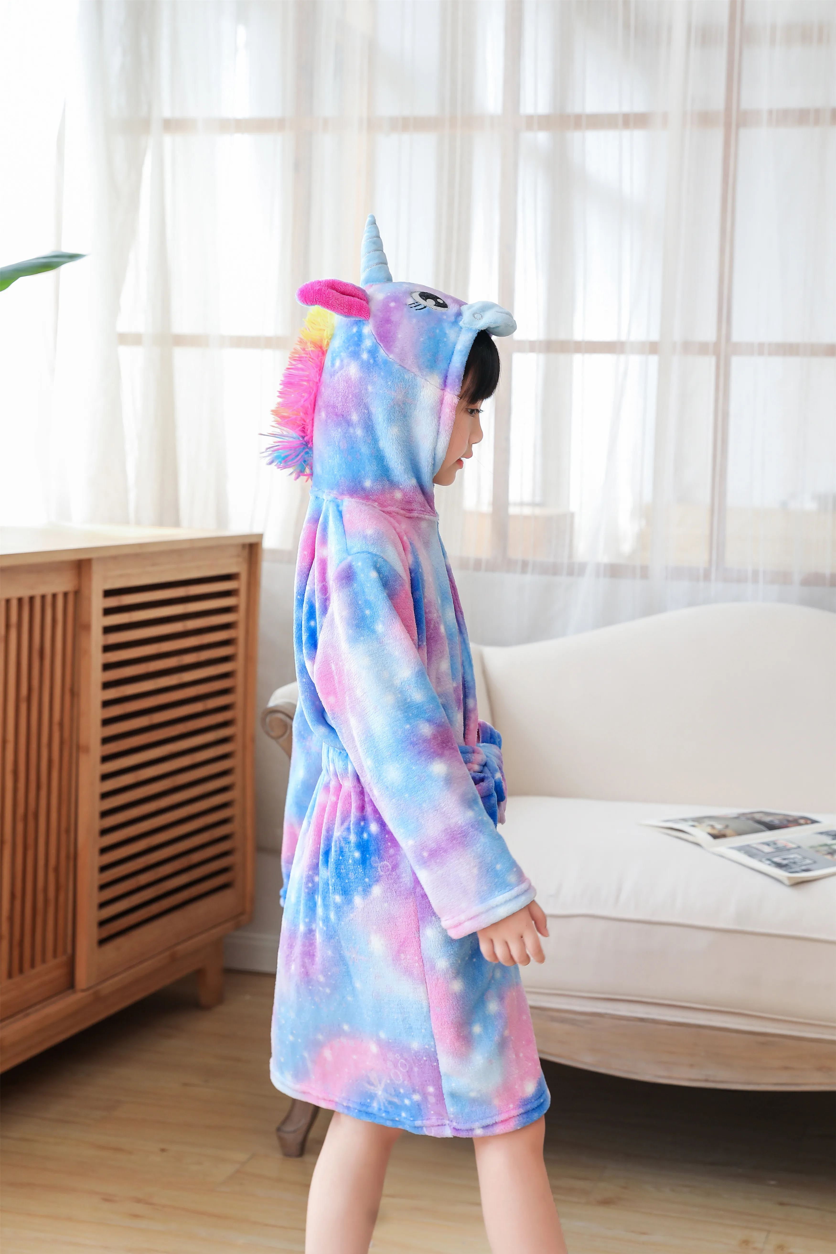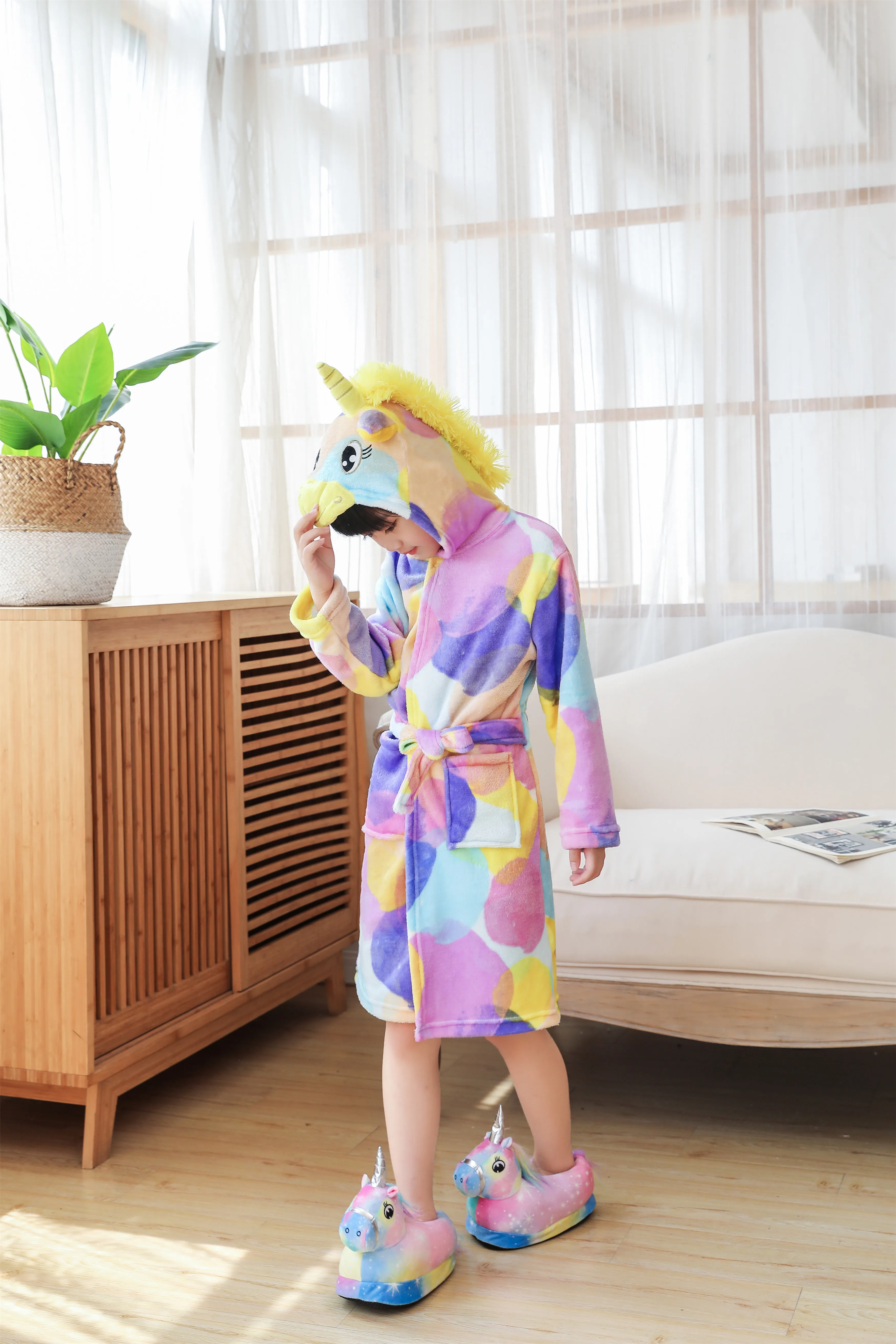 Зимние халаты с капюшоном в виде единорога, детские халаты, детские...