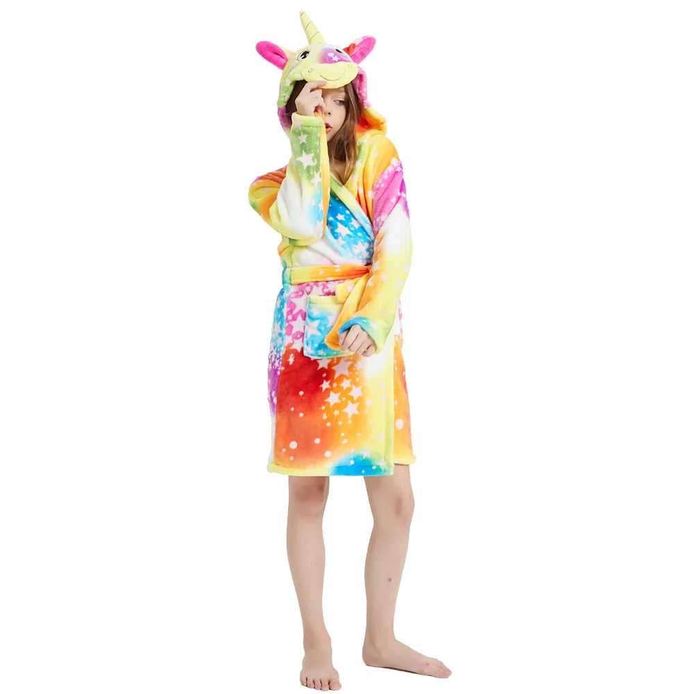 Kigurumi единорог с капюшоном Детские Банные халаты дети звезда Радуга банный халат с животными для мальчиков девочек пижама ночная рубашка детская одежда для сна