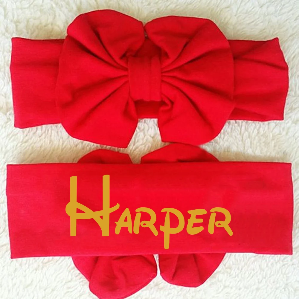 Головная повязка с персональным именем для малышей, с буквенным принтом, для новорожденных, для маленьких девочек, повязки голову-большой бант, детский душ, подарок на первый день рождения, головной убор