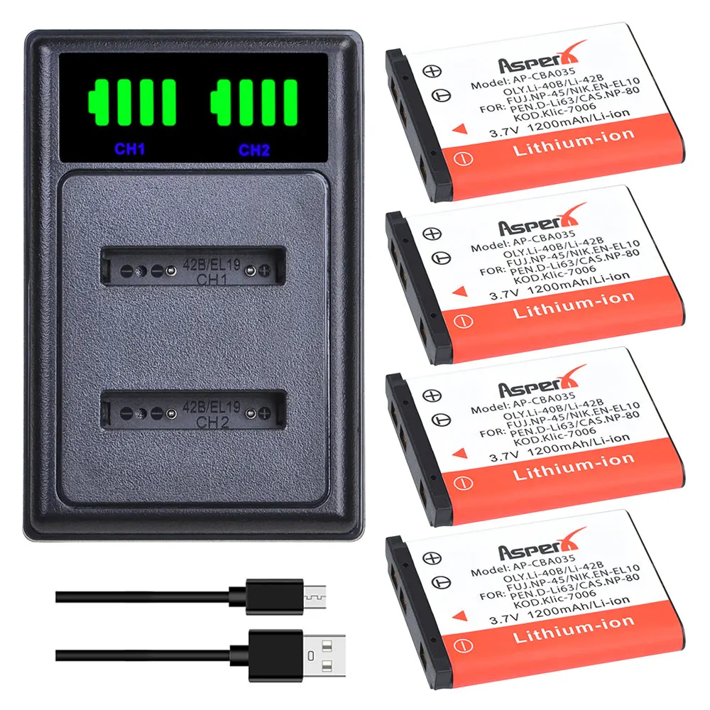 4x Li-40B Li40B Li-42B EN-EL10 Bateria литий-ионная батарея + зарядное устройство для FUJI пленки fuji NP-45 NP 45A 45B 45S Nikon CoolPix S60 S80 S200
