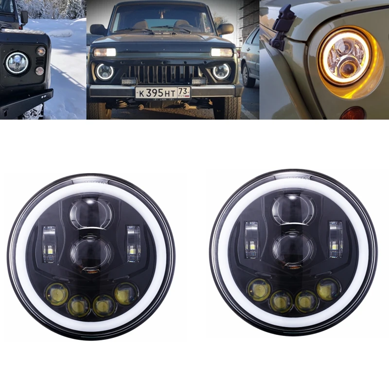 Светодиодная фара 2 шт., 7 дюймов, H4, с гало, ангельские глазки, для Лада 4x4 Урбан, нива, джип JK, Land rover, защитник, Хаммер, 2019