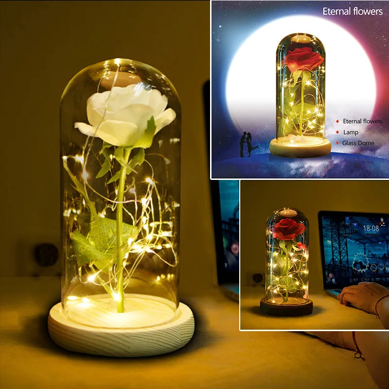 Вечная роза светодиодный коробке светильник кой набор цветов навсегда Красавица и Чудовище Роза в стеклянном куполе подарок на день Святого Валентина День Матери