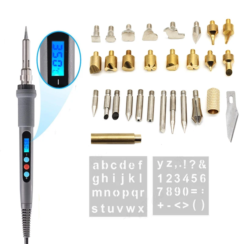 Паяльник по дереву, 60 Вт, с цифровым дисплеем AC220-240V дюйма, набор инструментов для выжигания в виде ручки, с европейской вилкой, ЖК-дисплеем