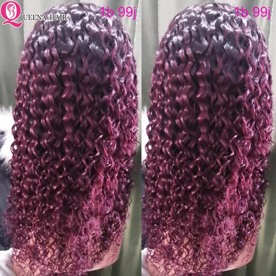 Парик из вьющихся человеческих волос Омбре 4x4 парик на сетке цветной 1B 27 1B 30 1B 99J бордовые бразильские волосы парики для женщин Remy 180% парики
