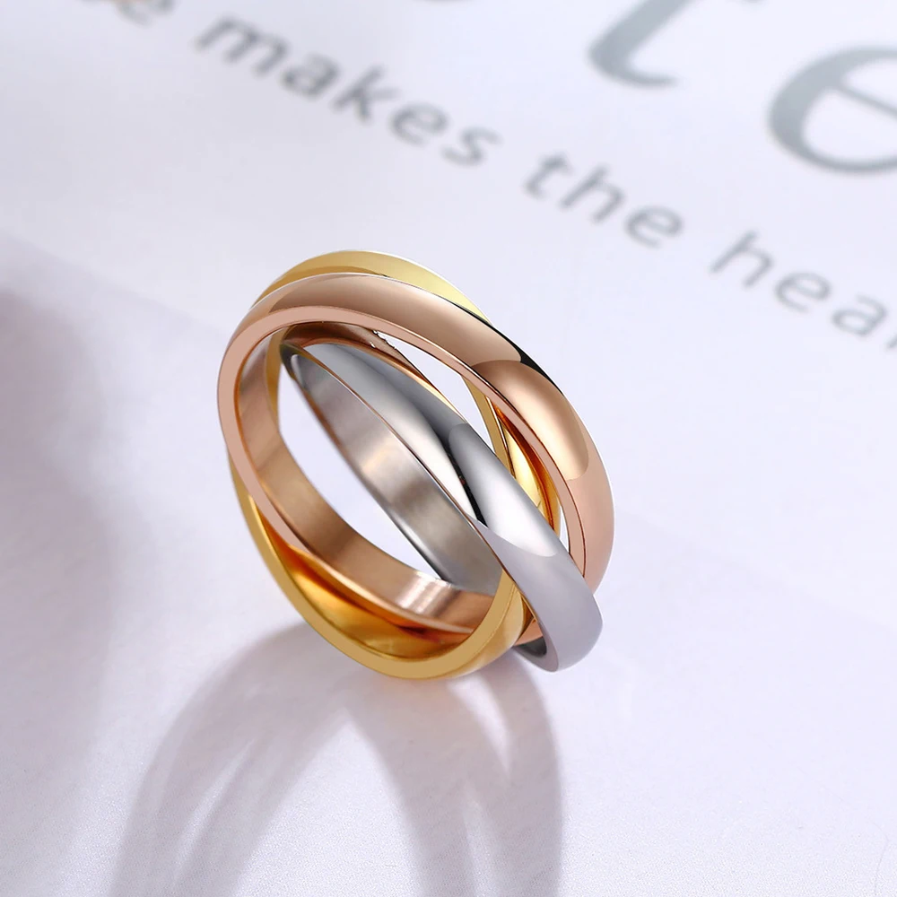 Классические 3 Круги кольца наборы для женщин из нержавеющей стали Свадебные помолвки женские ювелирные изделия