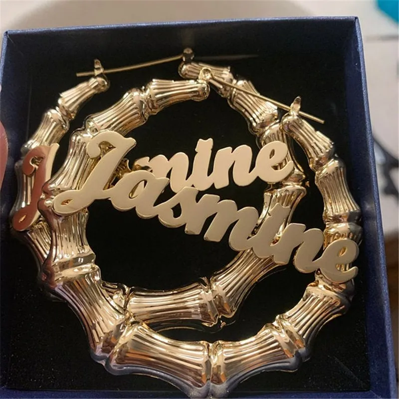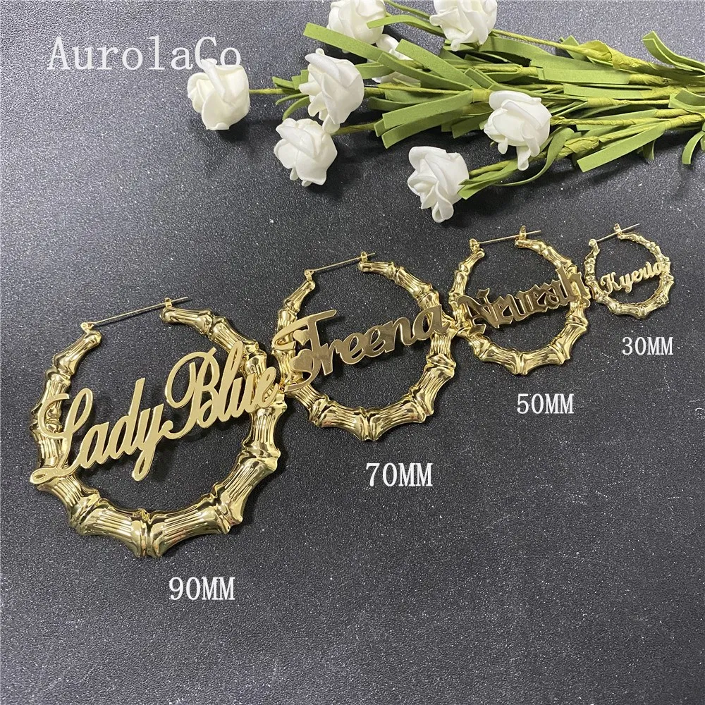 AurolaCo 30-125 мм Бамбуковые серьги пользовательское имя серьги ин...