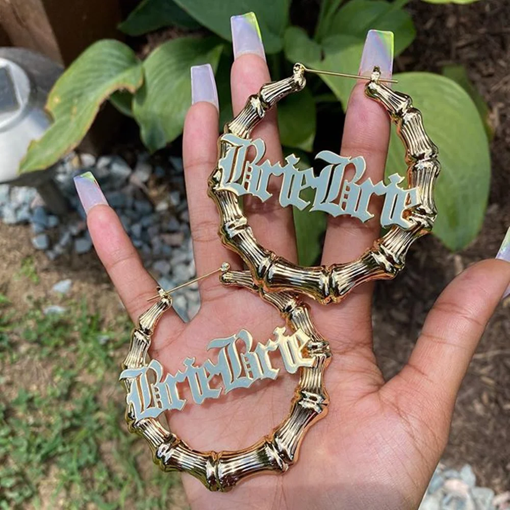 AurolaCo именные серьги с бриллиантами, хип-хоп, Сексуальные бамбук...