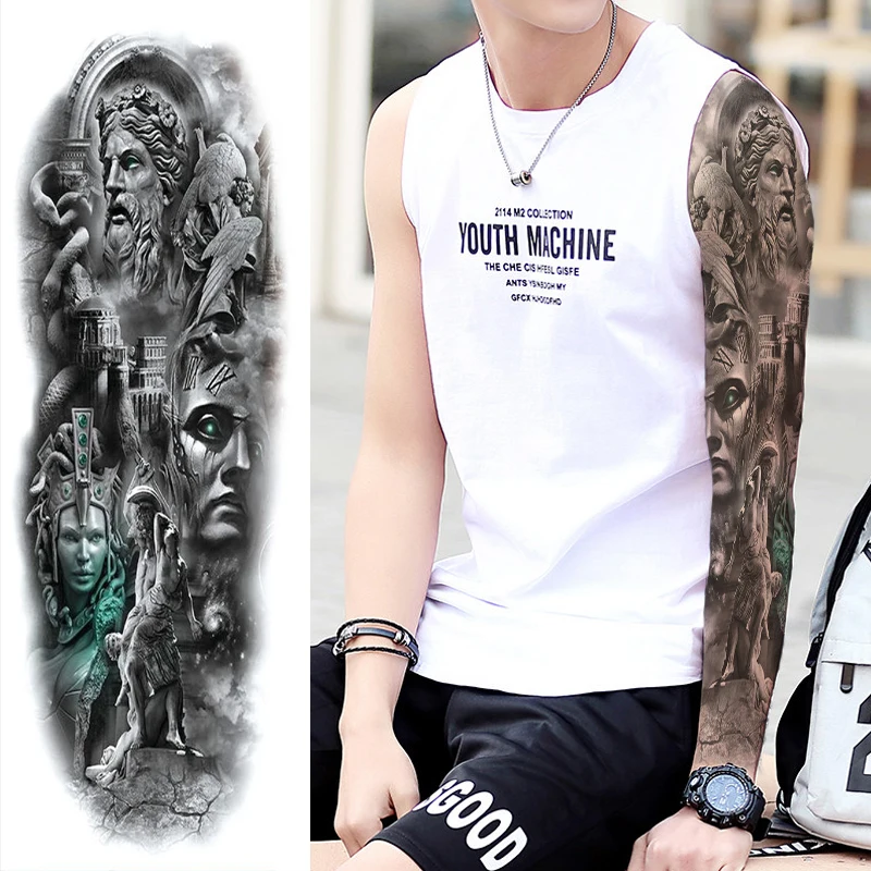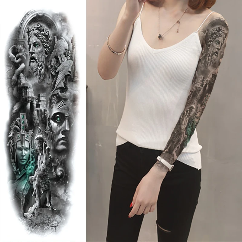 Водостойкая временная татуировка-наклейка, змея, медуза, греческая мифология, римский солдат, на всю руку, флэш-тату, для мужчин, женщин, мужчин
