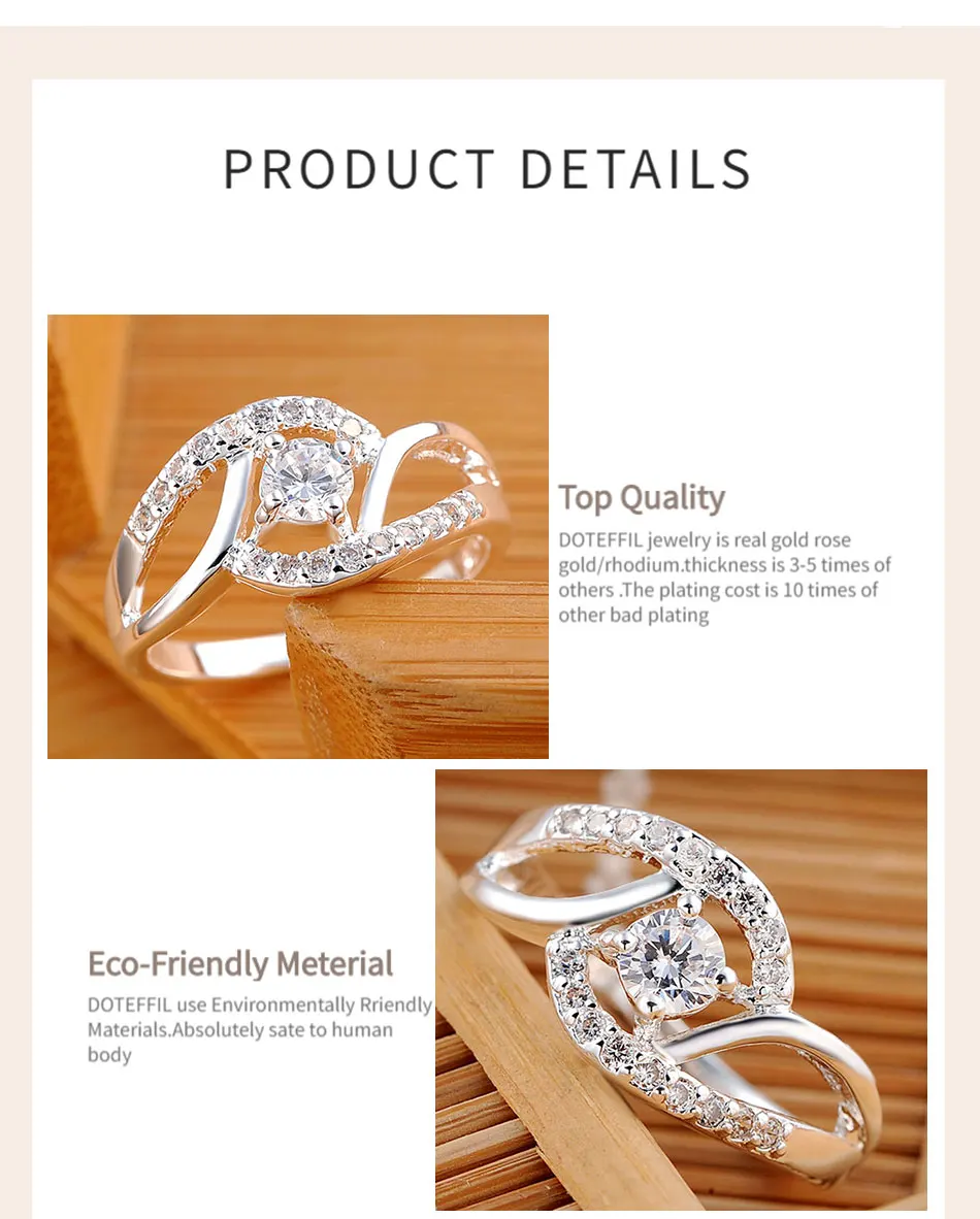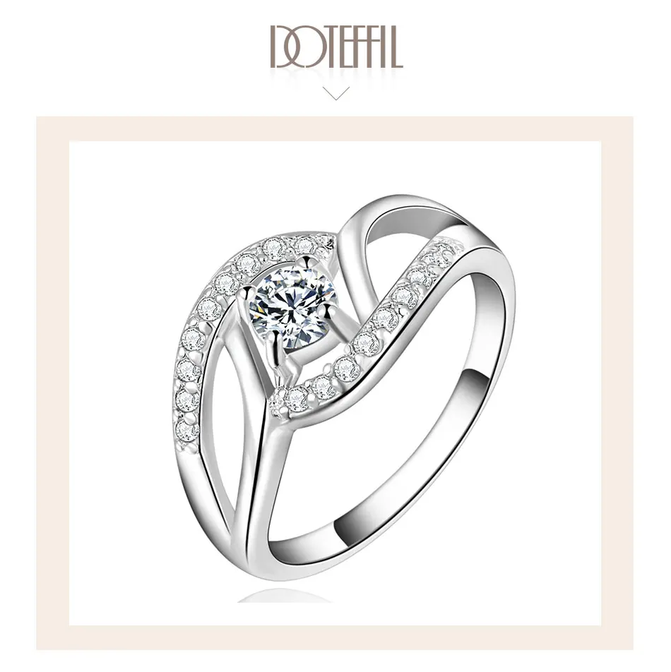 Двойное кольцо DOTEFFIL из стерлингового серебра 925 пробы с цирконами ААА для женщин, модные Изящные ювелирные украшения для свадьбы, помолвки, вечеринки