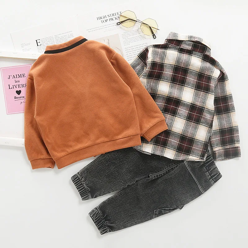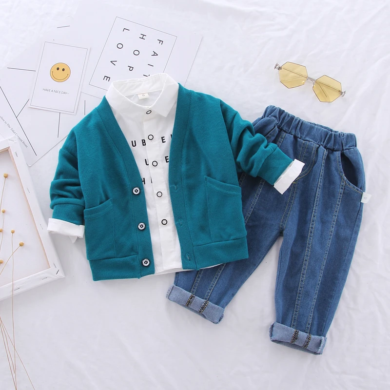 Новый осенний костюм для маленьких мальчиков детская хлопковая куртка, рубашка, штаны комплект из 3 предметов, модный костюм для малышей спортивные костюмы для малышей