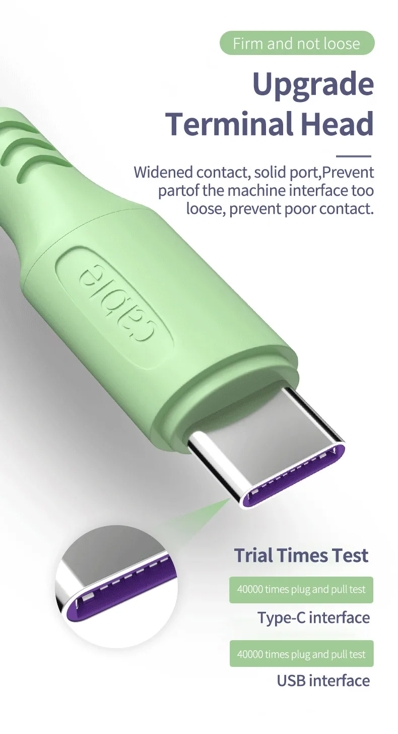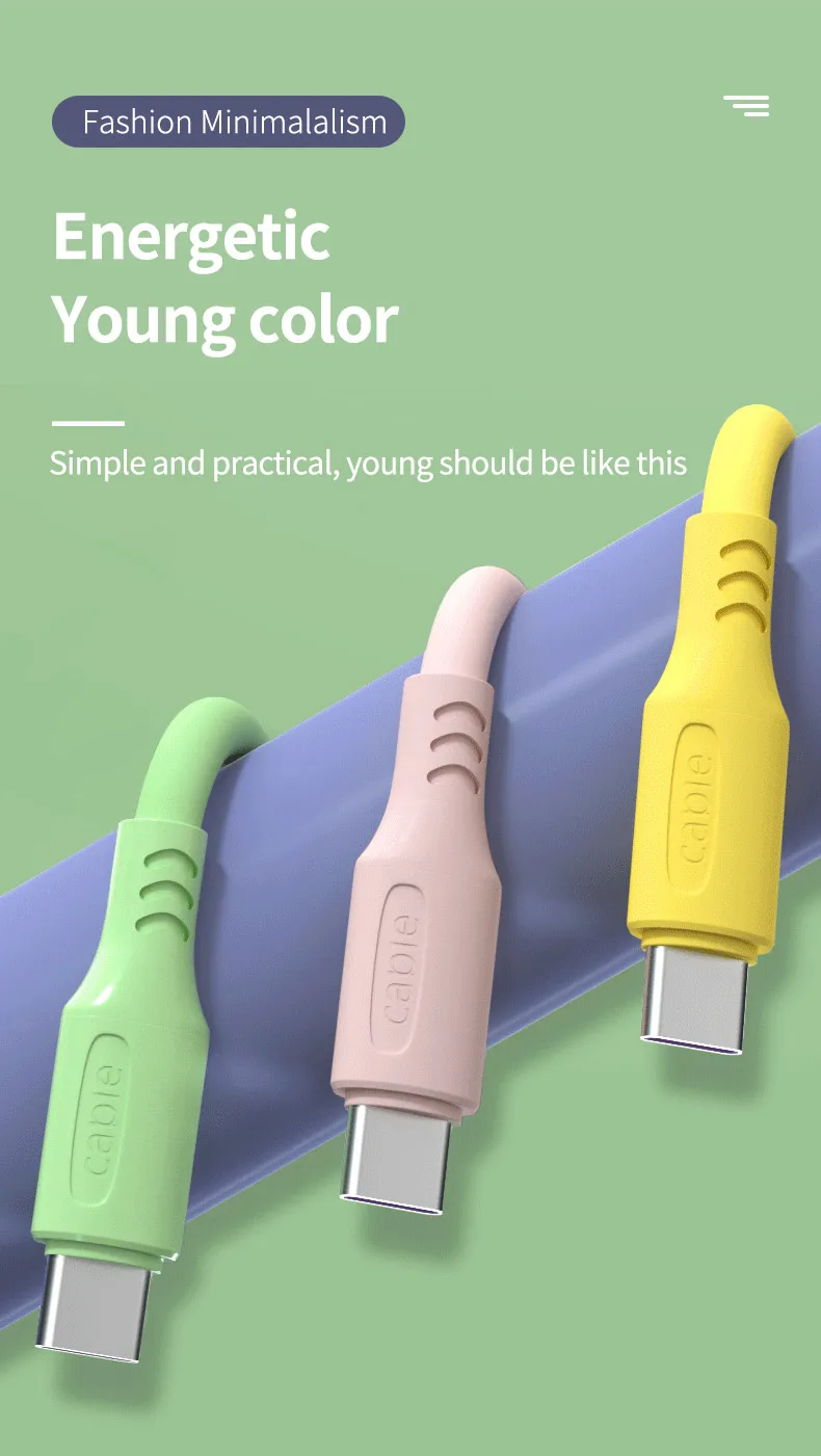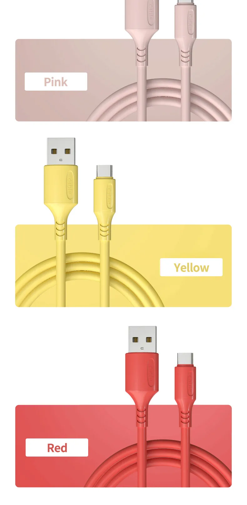 Кабель USB Type-C для быстрой зарядки, 3 А, жидкий мягкий силиконов...