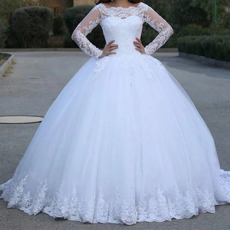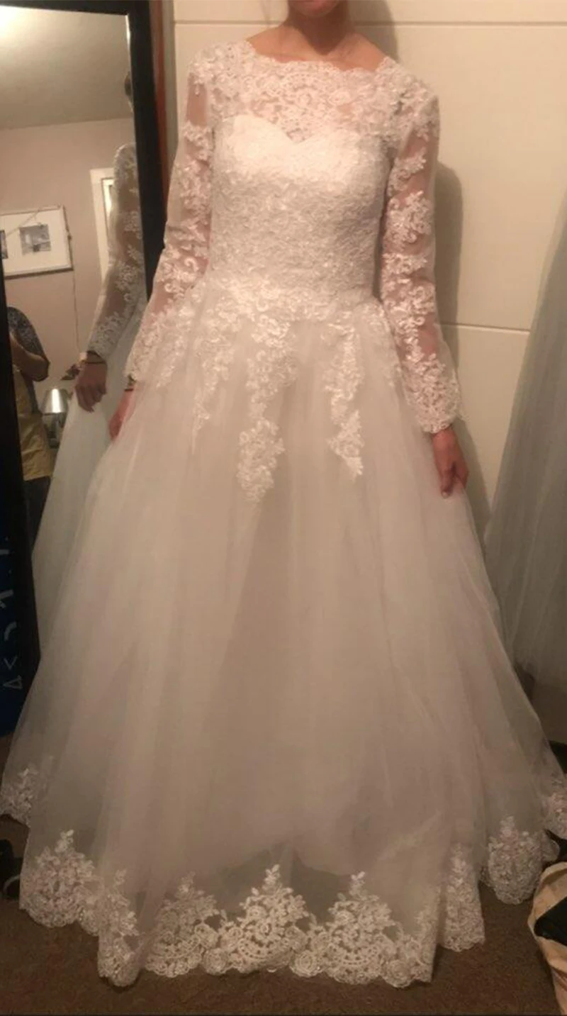 Свадебное платье с длинными рукавами, кружевной аппликацией и вышивкой на спине