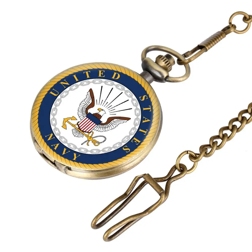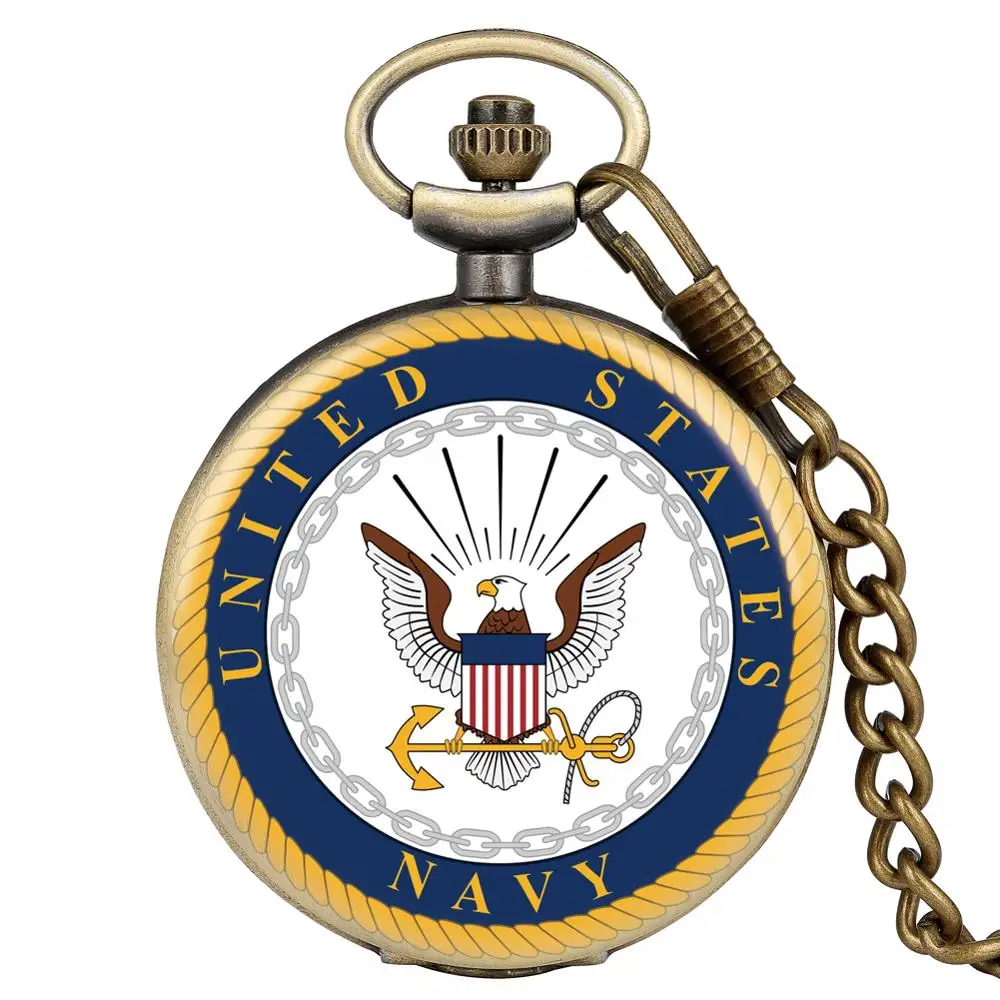 Винтажная бронзовая антикварная ретро американская морская эмблема военный человек ожерелье кулон подарок кварцевые карманные часы цепь для мужчин и женщин