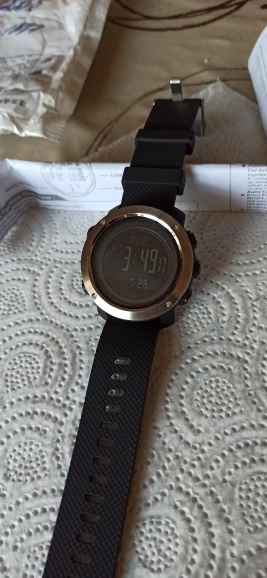 Функции: Водонепроницаемость 3 бар, хронограф, будильник, 12/24 часа, Эл-свет, дата, месяц, обратный отсчет, шагомер, калории, измерение температуры, измерение давления, компас, несколько часовых поясов