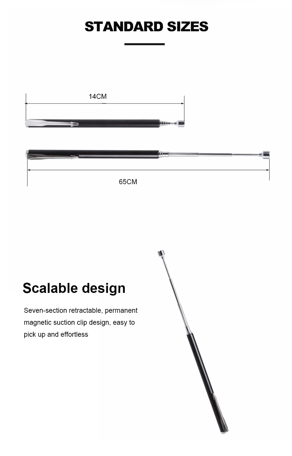2. Карманный зажим для ручки, легко носить с собой и использовать. Выдвижная конструкция, головка может впитываться в узкое пространство. Используется для сбора металлических деталей, аппаратных инструментов, гаек и болтов и т. д.