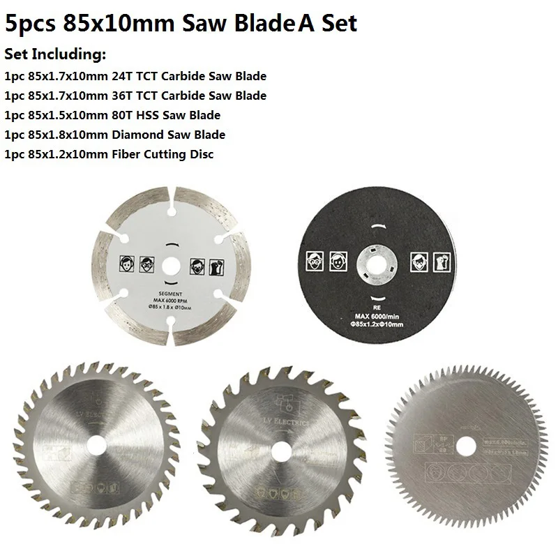 Диски для циркулярной пилы по дереву, 85x15 мм, 85x10 мм, 5 шт.