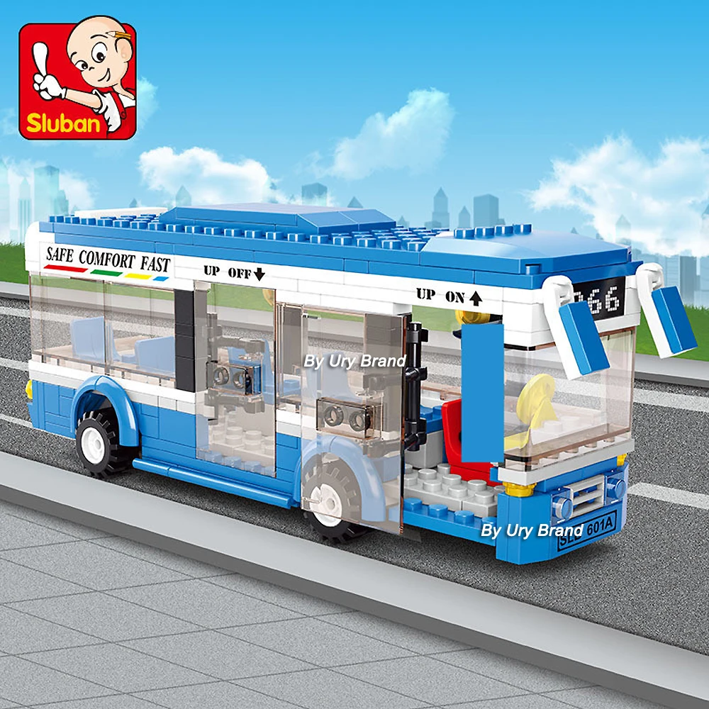 Конструктор Sluban MOC сделай сам, городской общественный автобус, однолучевая модель автомобиля, набор мини-кукол, развивающие строительные блоки, игрушки для детей, подарки на день рождения