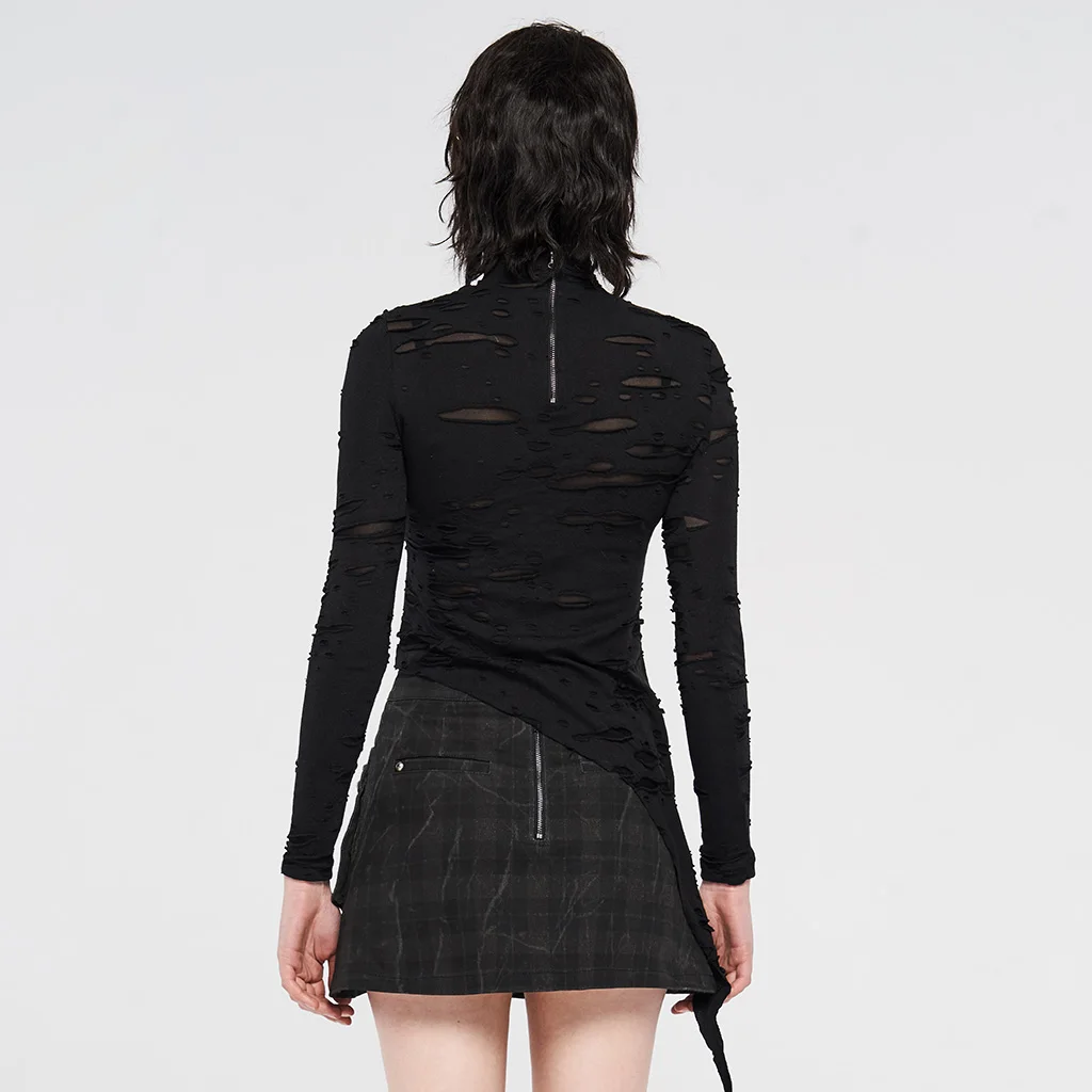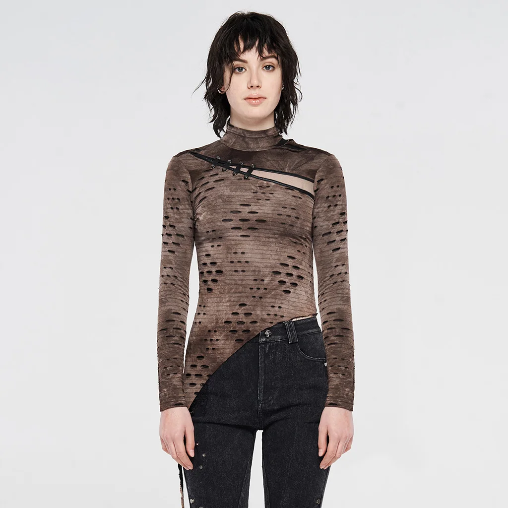 Женский трикотажный топ с длинным рукавом и асимметричным подолом, в готическом стиле, футболки в стиле стимпанк