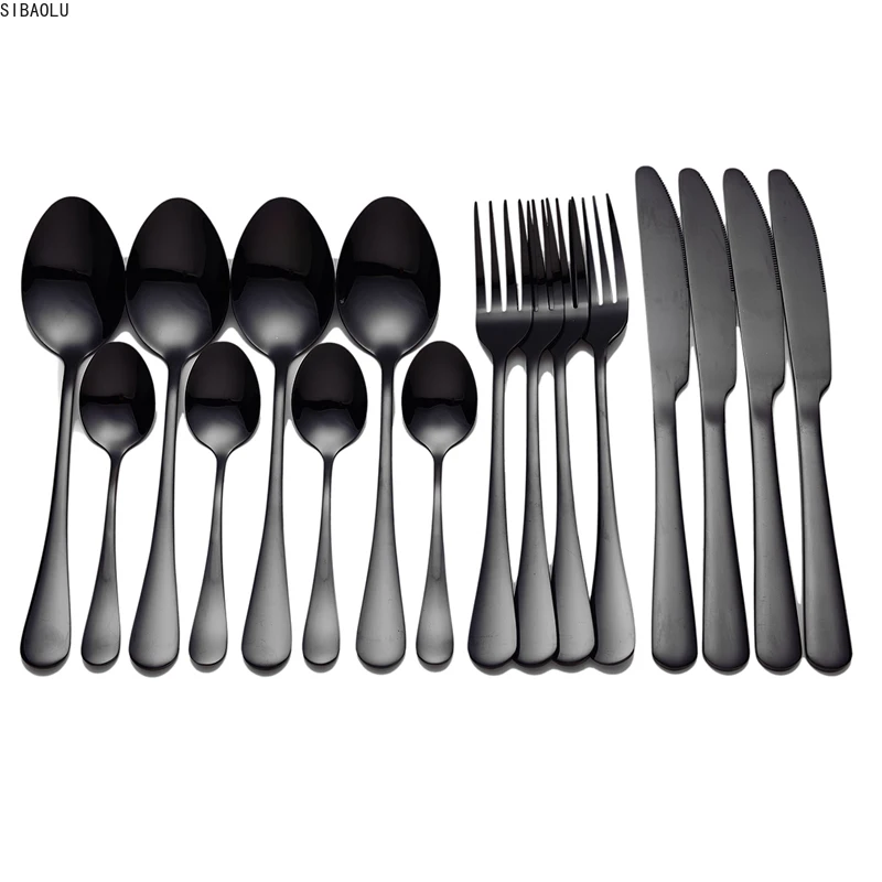 2020 столовые приборы из нержавеющей стали вилки, ножи, ложки кухонный набор обеденной посуды вилка ложка набор ножей черная посуда 16 шт