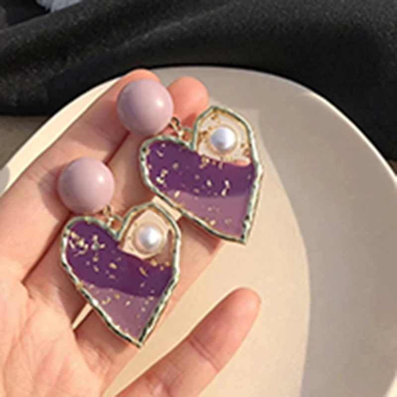 Женские серьги-подвески с жемчугом, серьги в форме сердца с жемчуго...