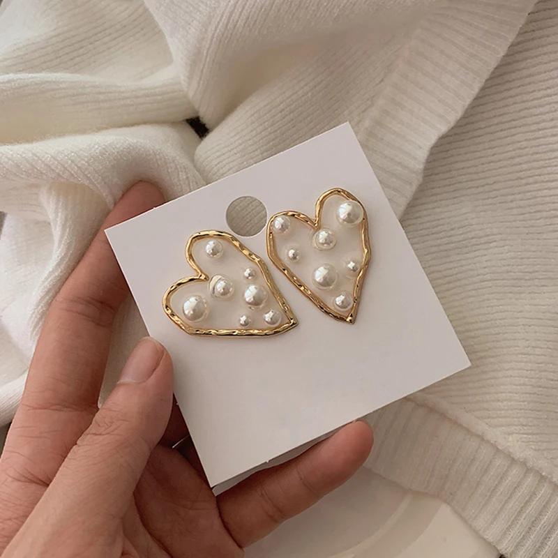 XIYANIKE чистые белые жемчужные бусины, круглые серьги в форме серд...