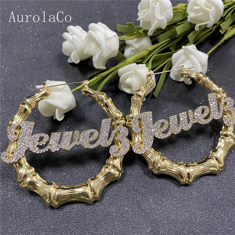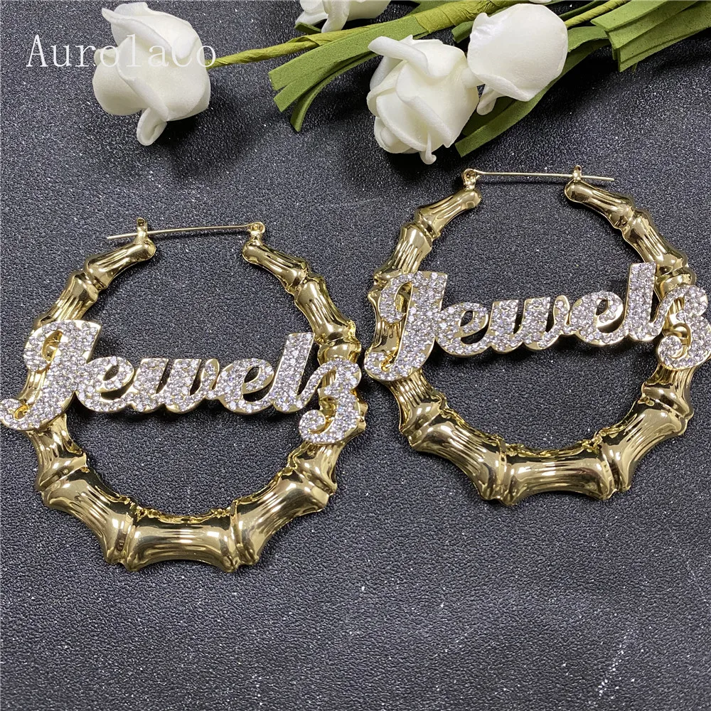 AurolaCo именные серьги с бриллиантами, хип-хоп, Сексуальные бамбук...