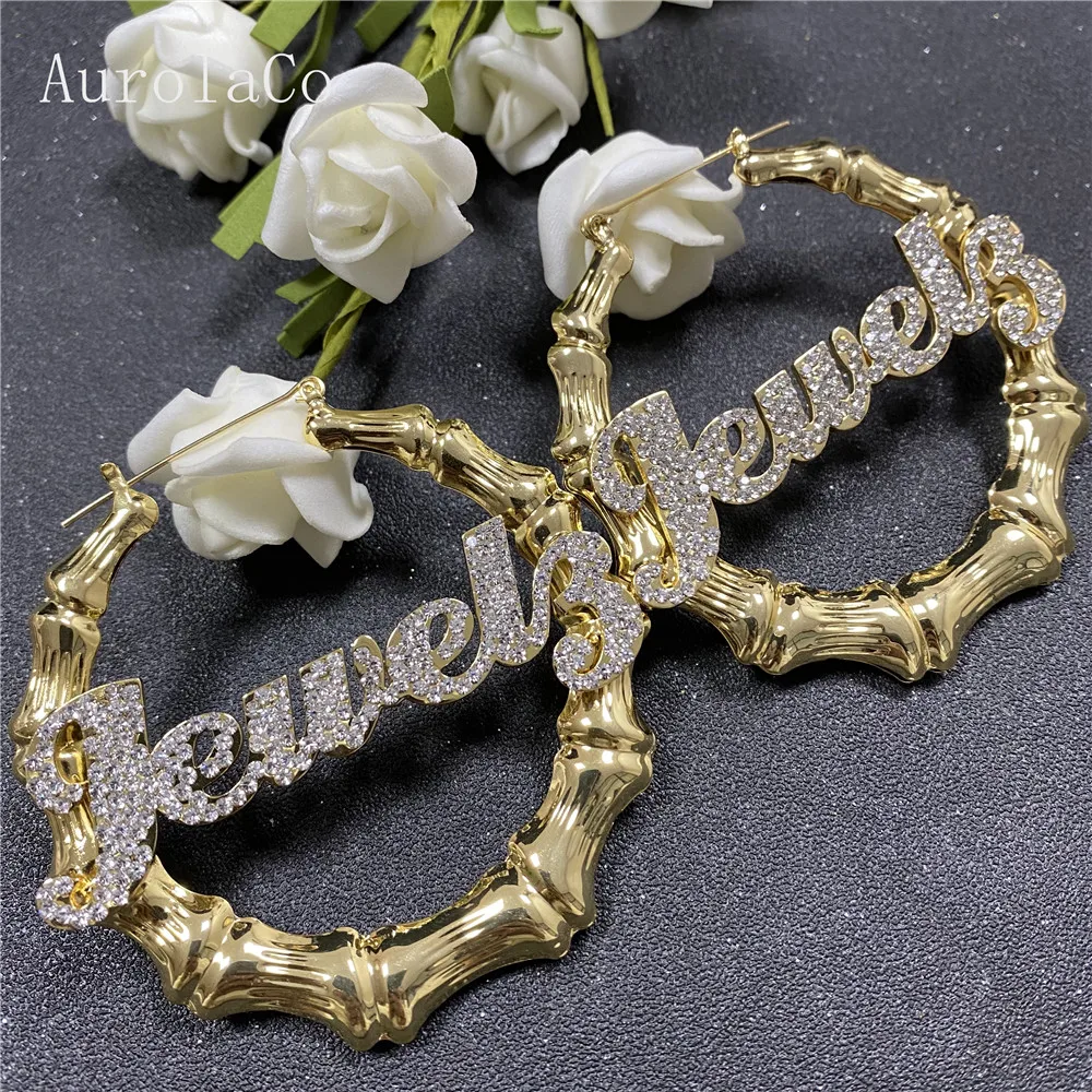 AurolaCo серьги с именем на заказ с бриллиантами на заказ Bling обр...