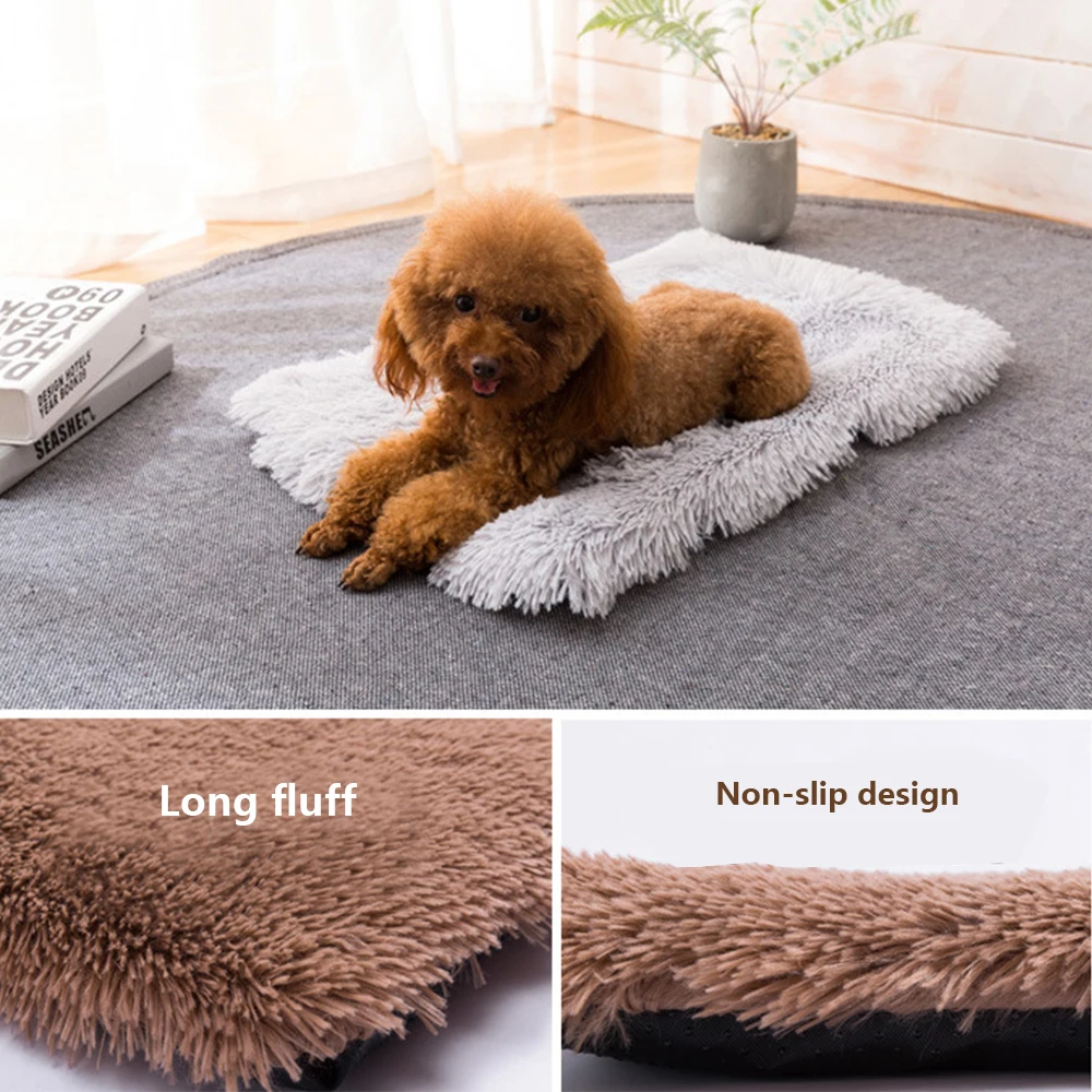 Зимняя длинная плюшевая кровать для домашних животных, мягкие флисовые одеяла, подушка для домашних животных, дом для маленьких средних собак, кошек, спящих кошек, матрас, принадлежности